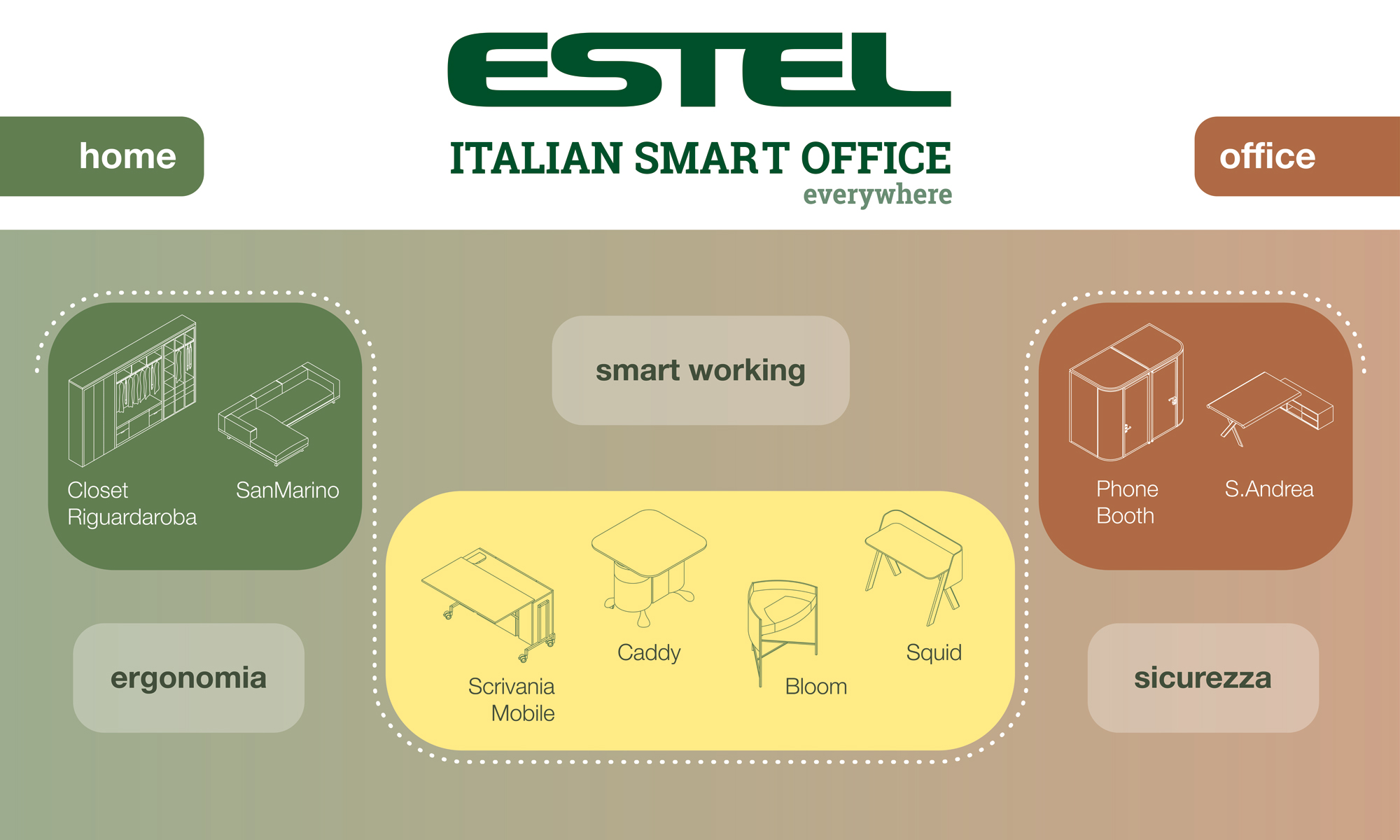 Dopo due anni di forfait forzato Estel Group torna al Salone del Mobile di Milano con uno stand espositivo per presentare le tre “anime” produttive dell’azienda: Casa, Ufficio e la novità Smart Working.