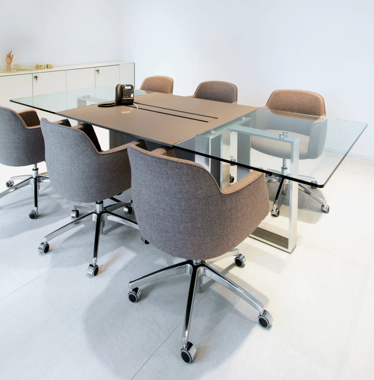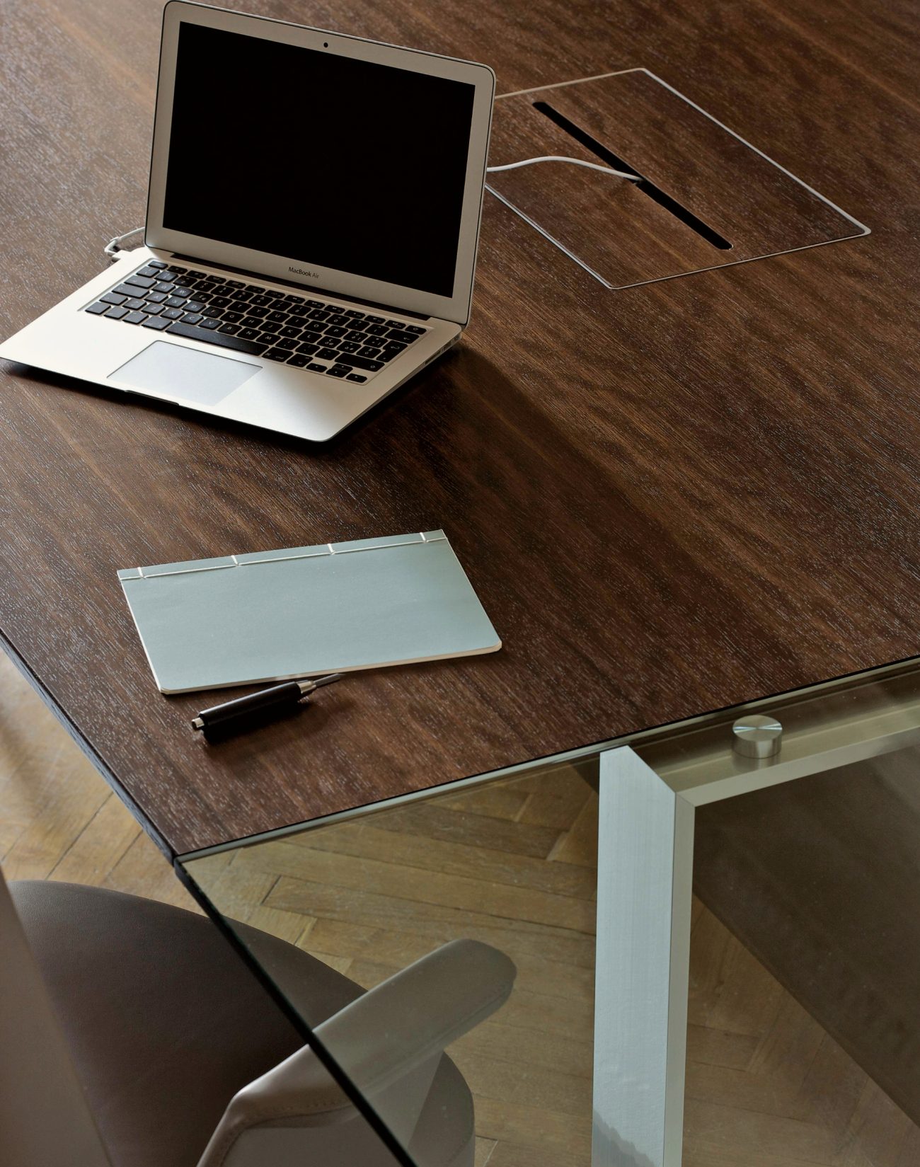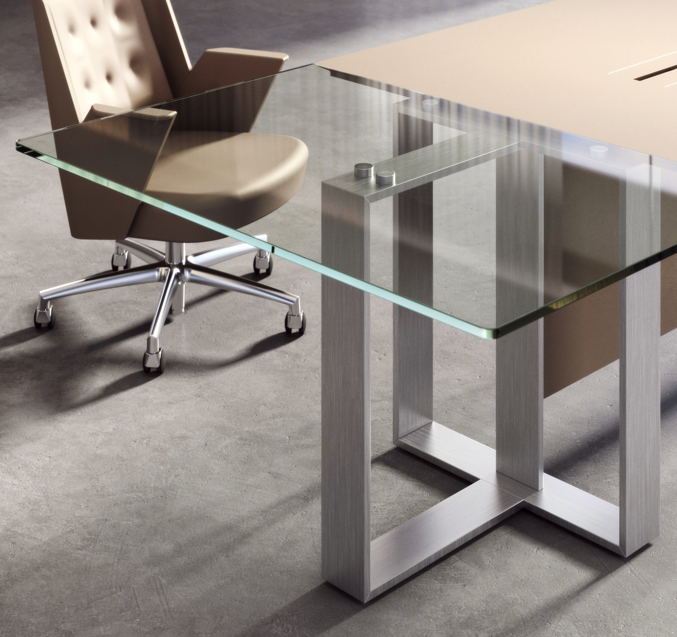 Le basi sono collegate tra loro da un modesty panel che può contenere una grossa quantità di cavi fruibili dall’operatore tramite top access.