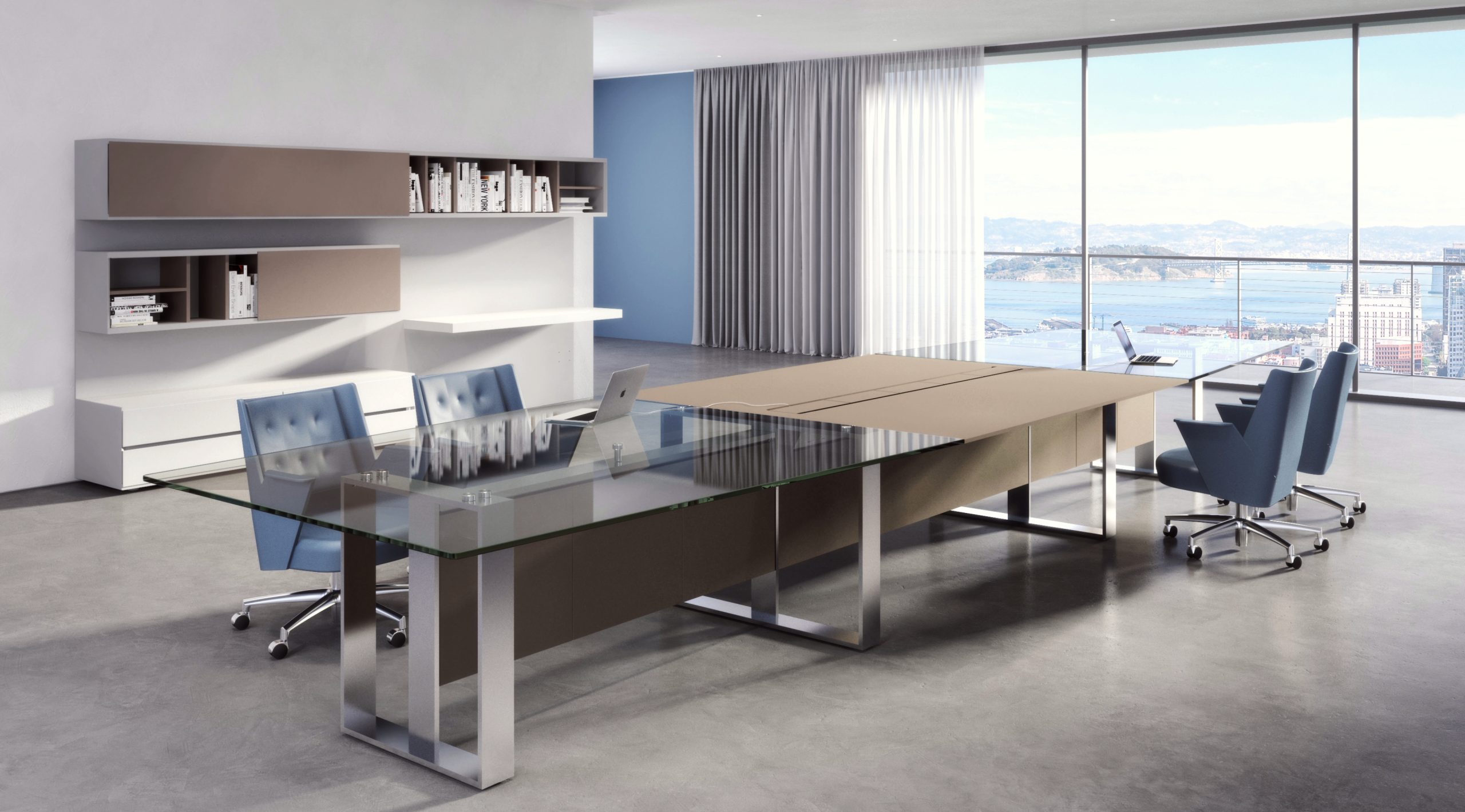 Le basi sono collegate tra loro da un modesty panel che può contenere una grossa quantità di cavi fruibili dall’operatore tramite top access.