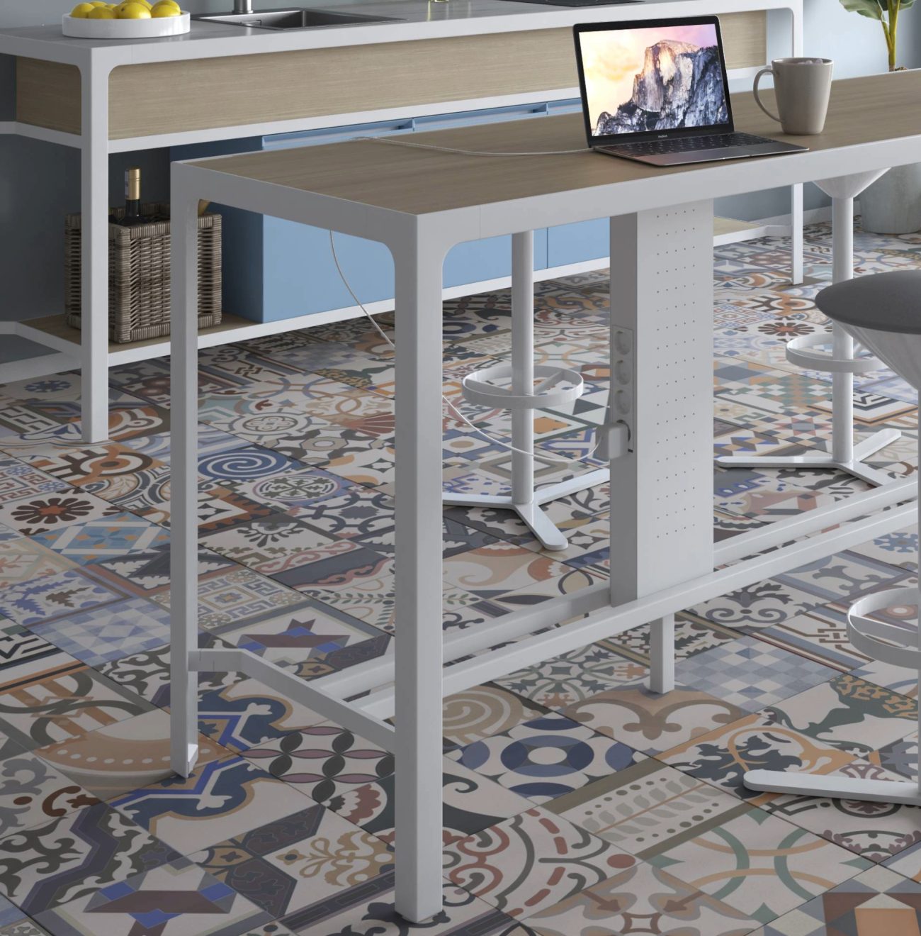 I banconcini H110 sono realizzati con struttura in metallo verniciato o nella versione metallo galvanizzato, combinabile con diverse tipologie di materiali per il piano di lavoro.