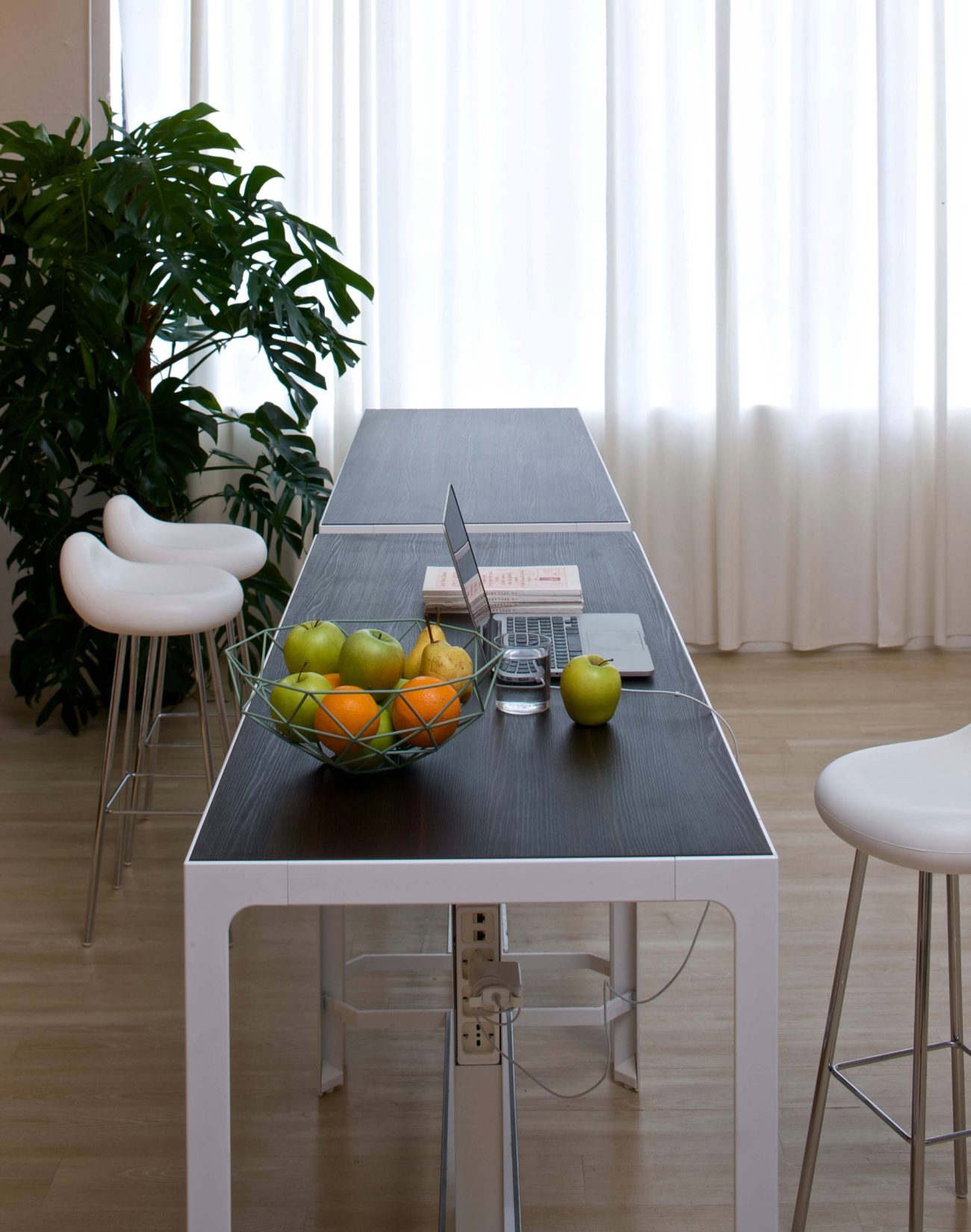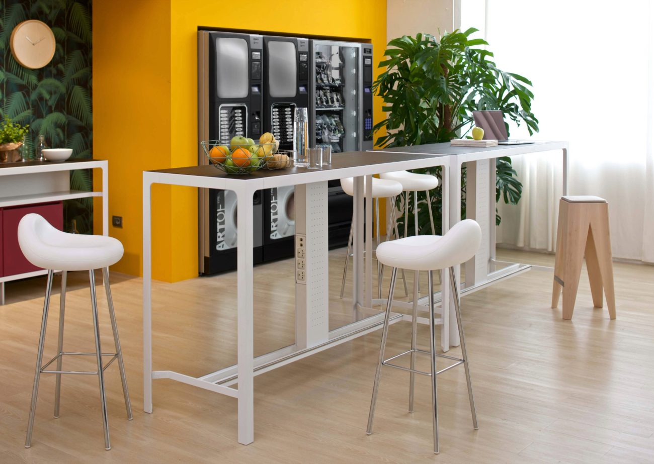 I banconcini sono predisposti per elettrificazione e connettività, ottenibili attraverso una o più colonne multiprese. Un prodotto ideale per le aree in condivisione.