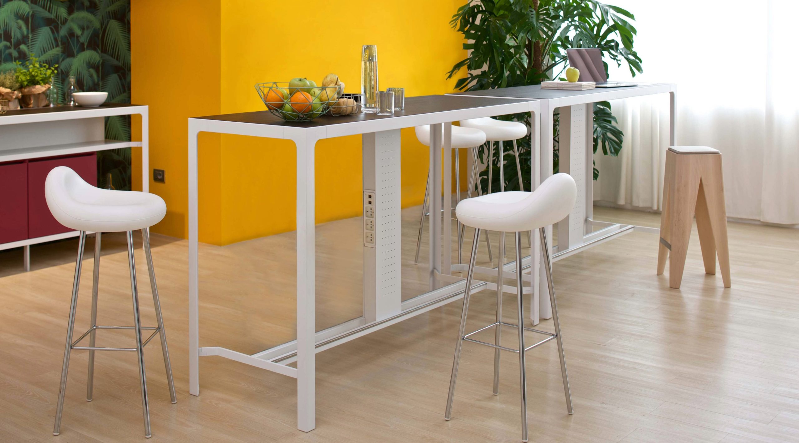 I banconcini sono predisposti per elettrificazione e connettività, ottenibili attraverso una o più colonne multiprese. Un prodotto ideale per le aree in condivisione.