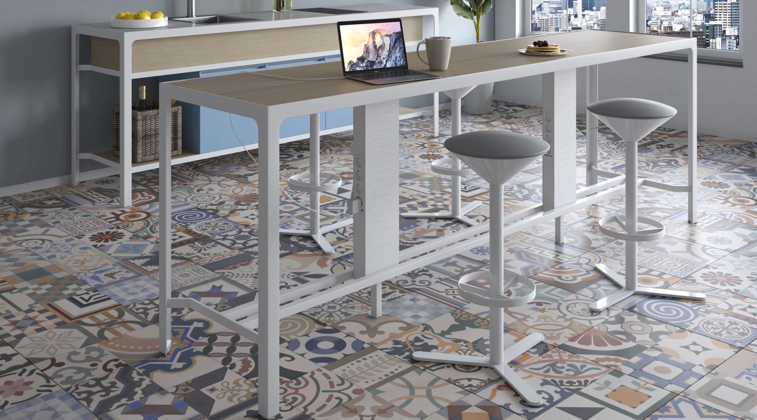 I banconcini H110 sono realizzati con struttura in metallo verniciato o nella versione metallo galvanizzato, combinabile con diverse tipologie di materiali per il piano di lavoro.
