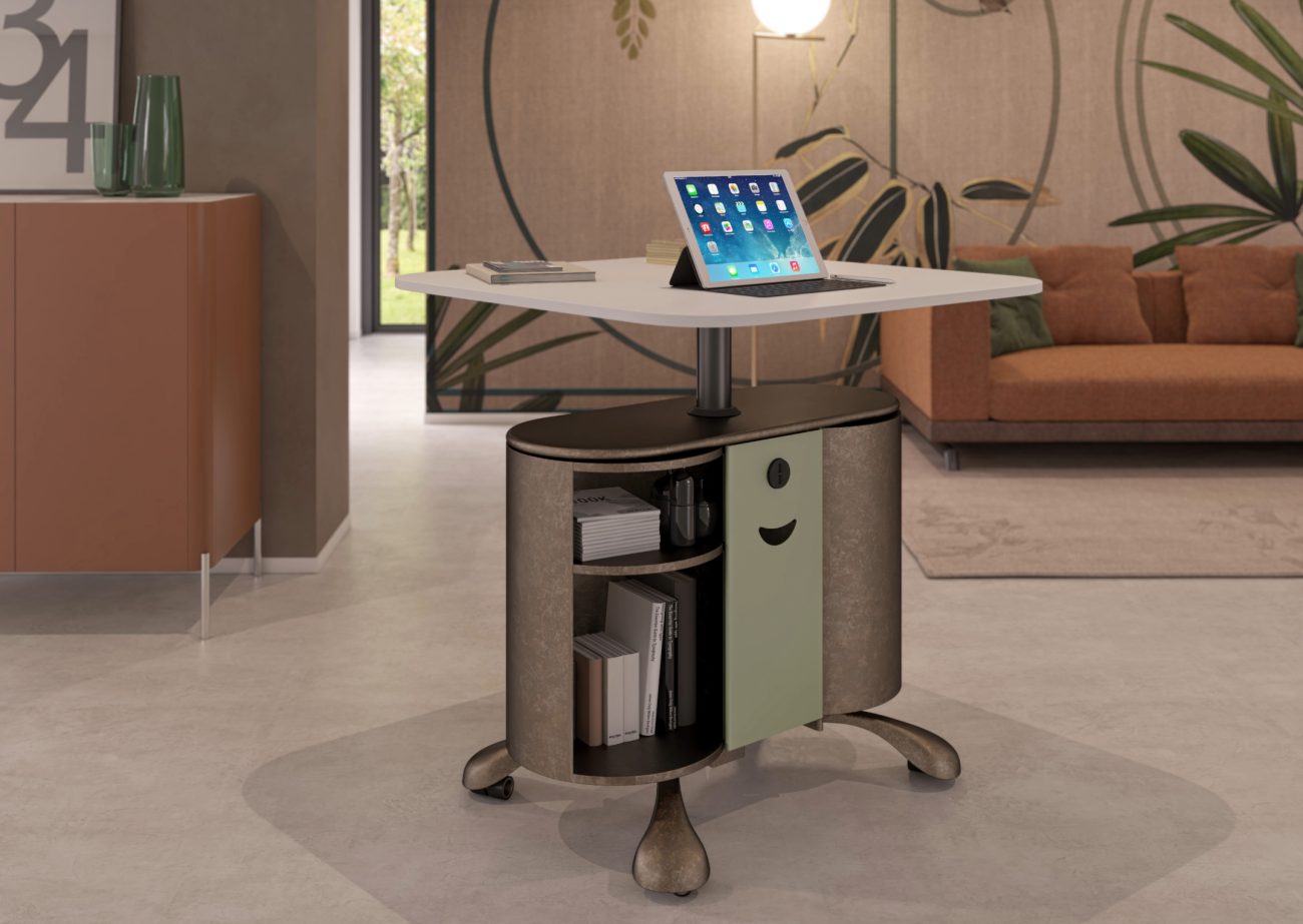 Il piano è elevabile tramite un sistema a pistone ad aria ed è disponibile di serie in finitura super matt.