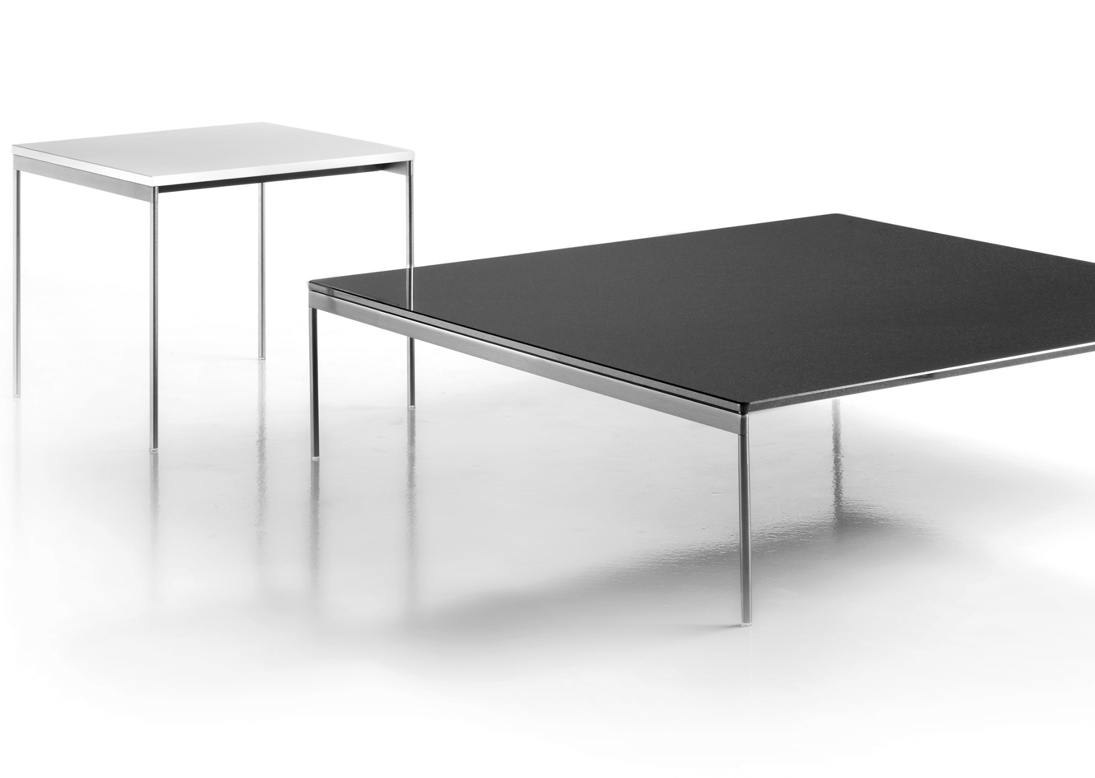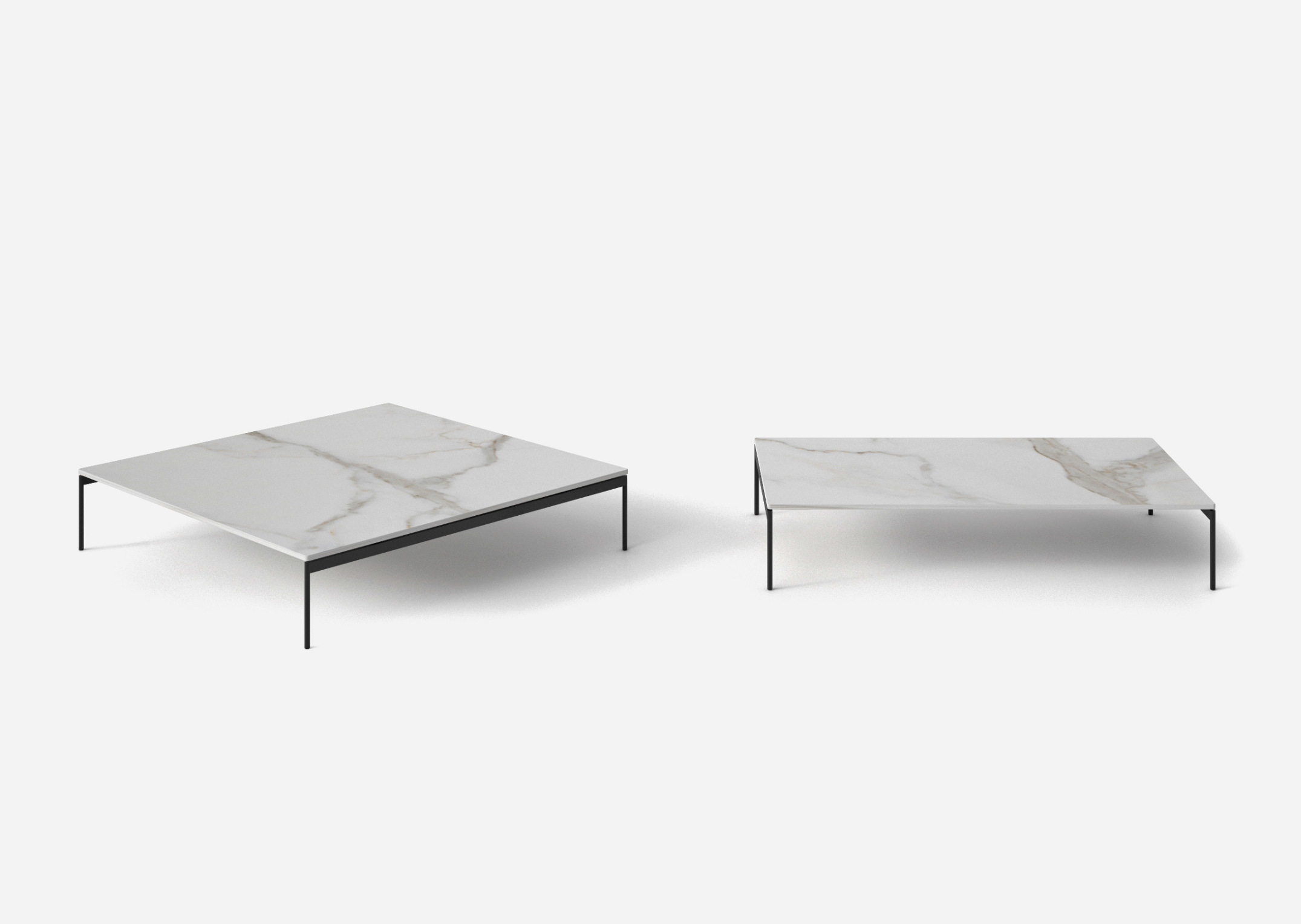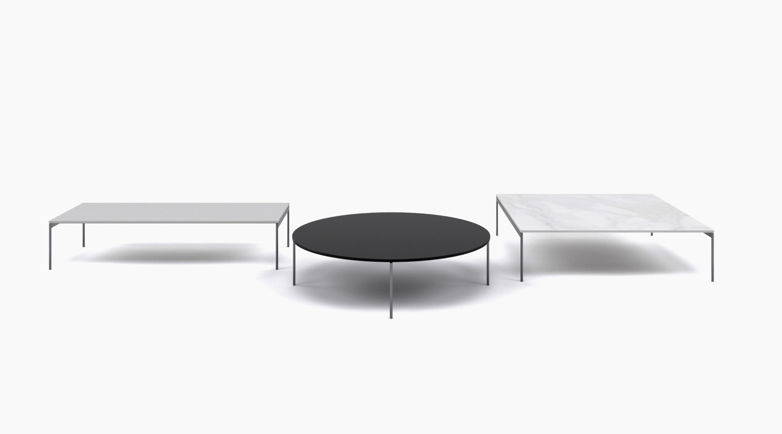 Questa gamma di tavolini di articola in quattro dimensioni e due varianti d’altezza.