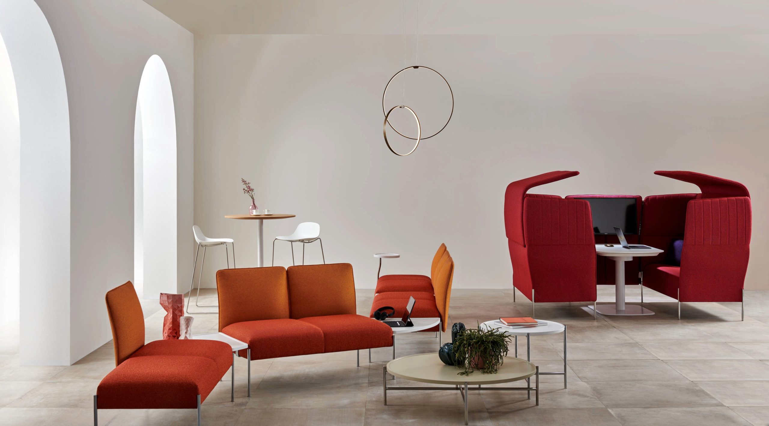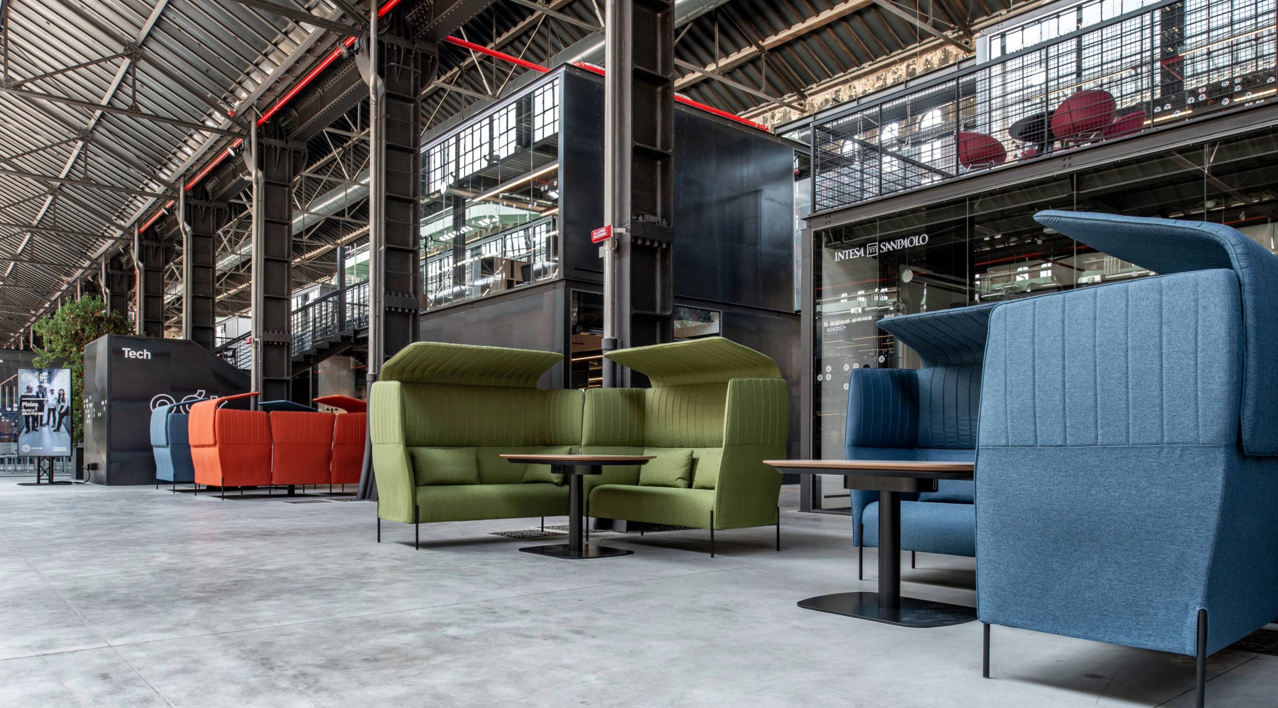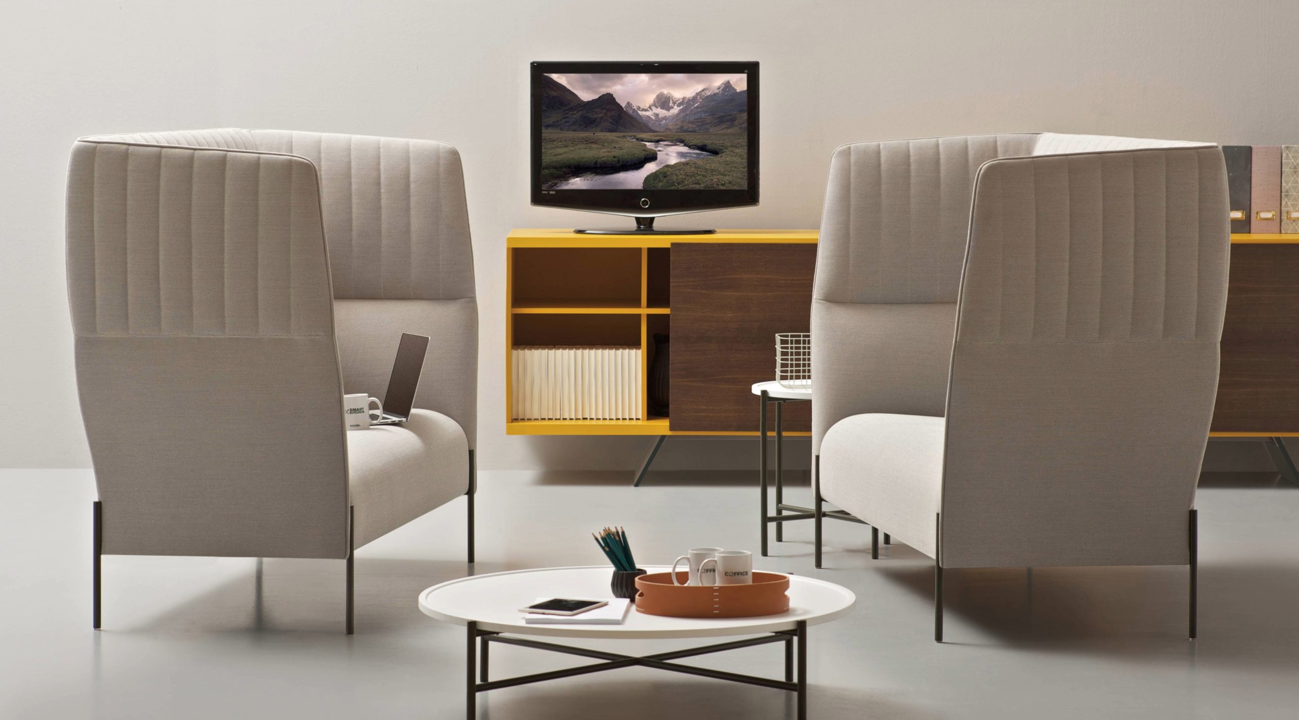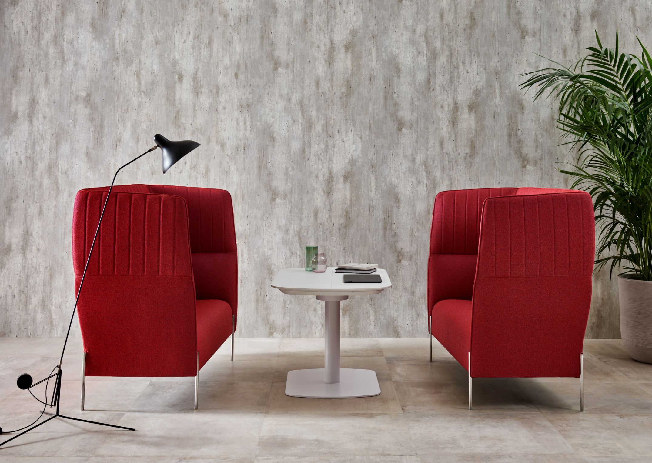 Grazie allo schienale alto 127 cm, Dolly Chat riesce a segmentare spazi di riunione informali acusticamente protetti.