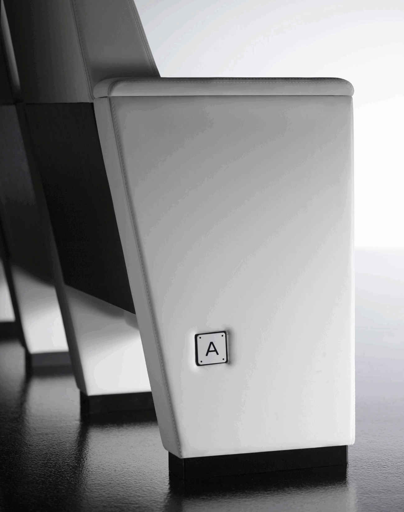 I dettagli fanno di Domino una piccola workstation, attrezzata per la conferenza scientifica e per la sala multimediale. Dalla tavoletta estesa per laptop, fino alla presa elettrica, ogni accessorio contribuisce alla praticità della seduta.