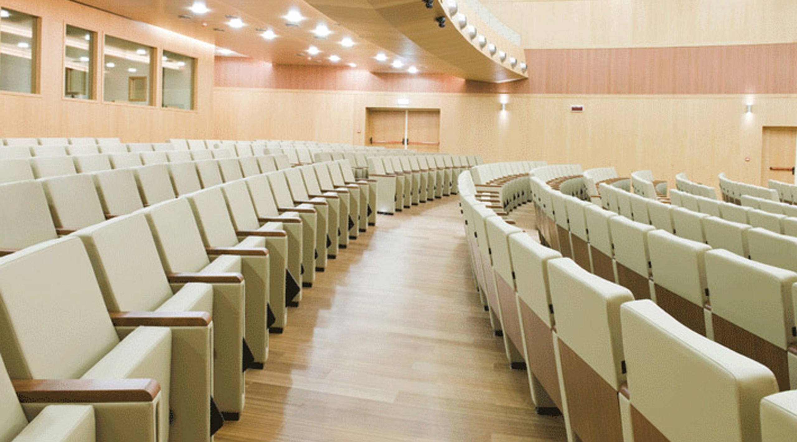 I dettagli fanno di Domino una piccola workstation, attrezzata per la conferenza scientifica e per la sala multimediale. Dalla tavoletta estesa per laptop, fino alla presa elettrica, ogni accessorio contribuisce alla praticità della seduta.