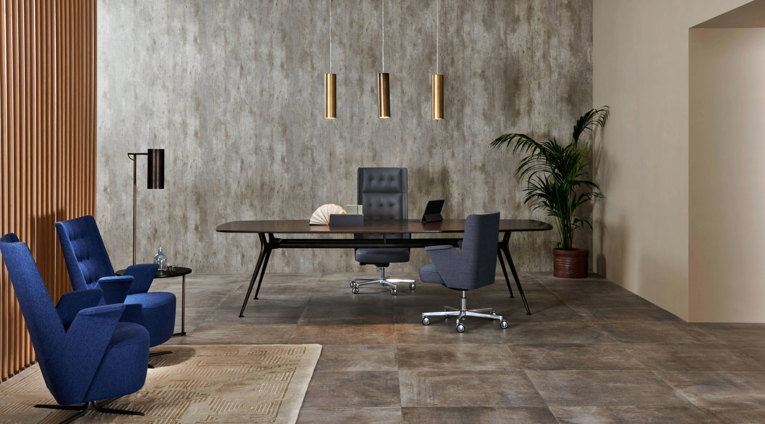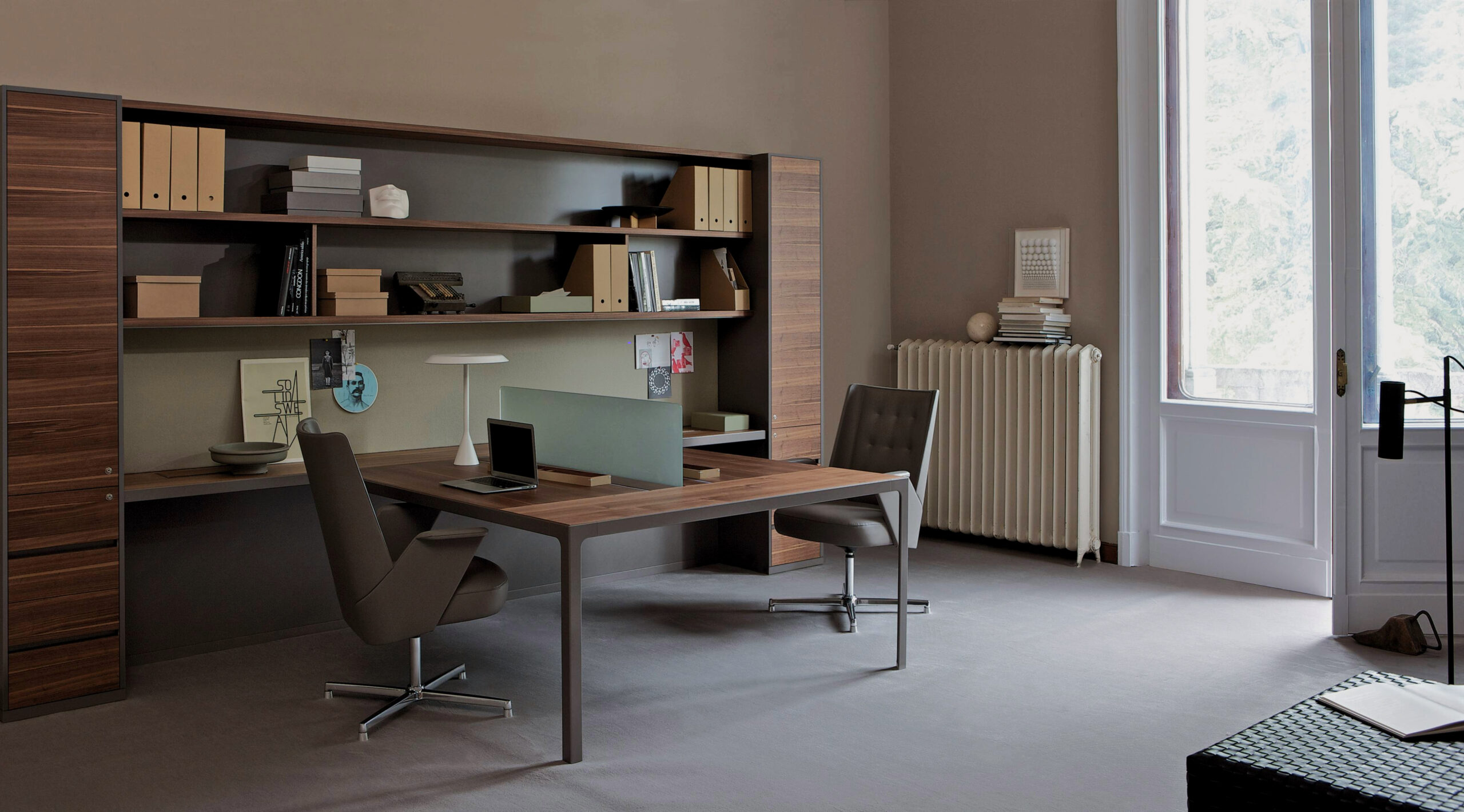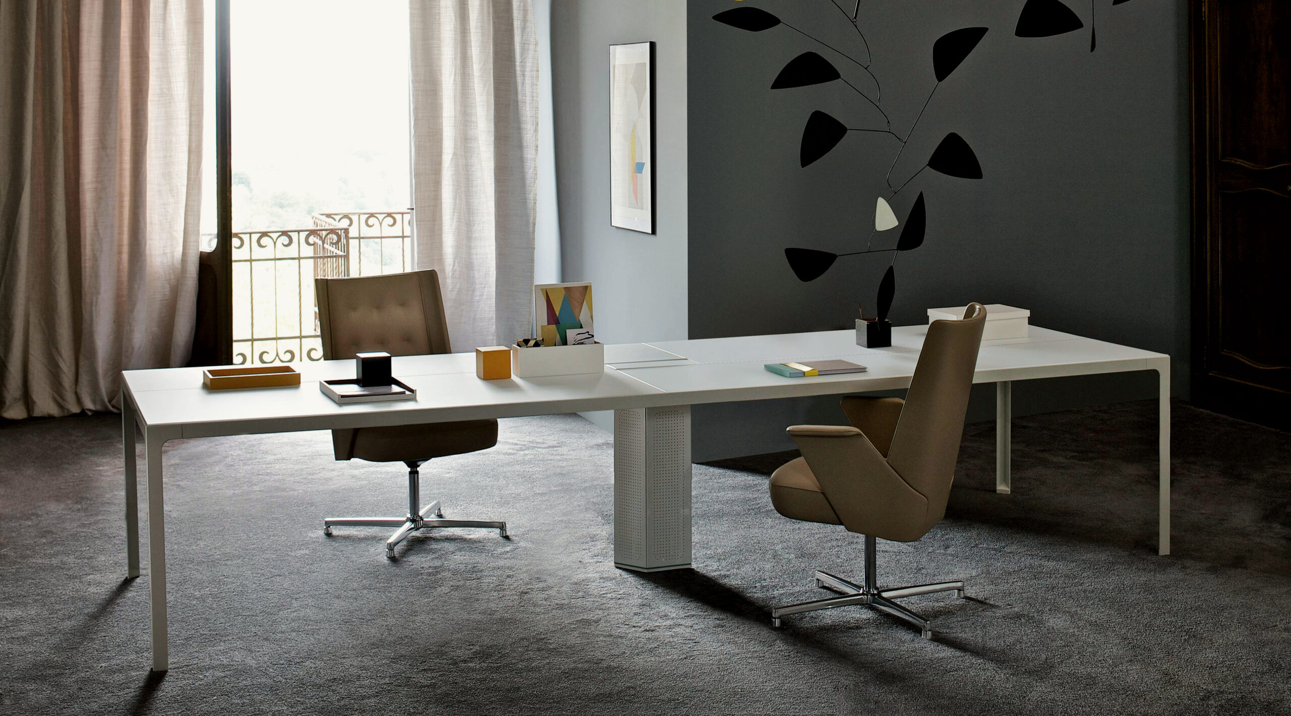 Le sedute da lavoro, realizzate con struttura portante in multistrato, sono caratterizzate da un design avvolgente ed organico, spezzato da linee tese per un comfort di alto livello.