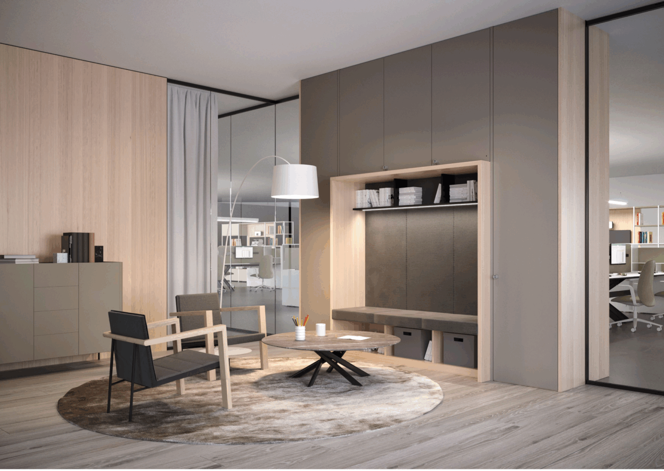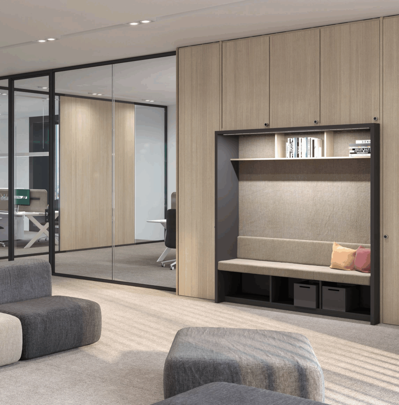 Ogni elemento è progettato per integrarsi con continuità architettonica, fissato da pavimento a soffitto e dotato di sistemi fonoassorbenti. Il risultato è un’architettura interna dinamica e versatile, in cui le interpareti non si limitano a dividere gli ambienti, ma li arricchiscono con funzioni essenziali per il benessere e la produttività quotidiana.