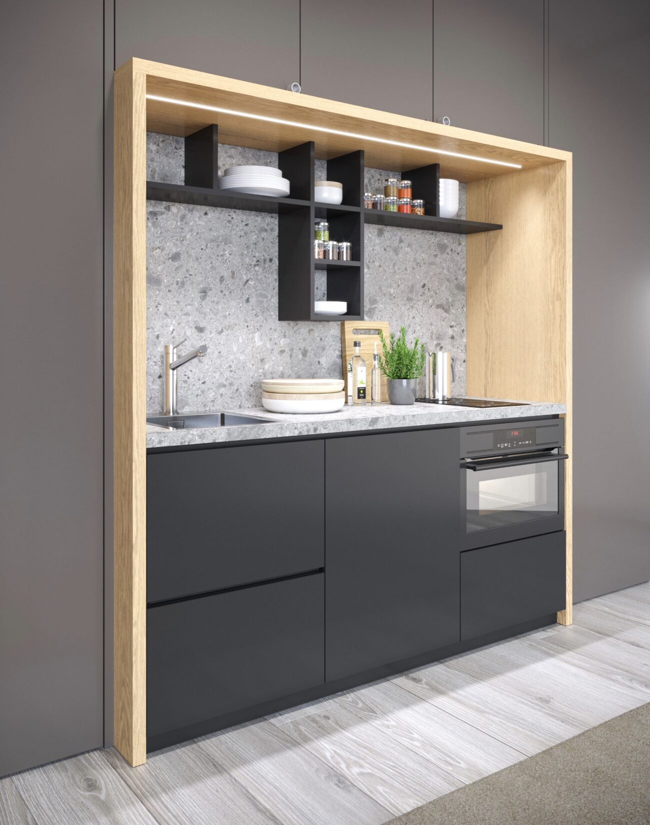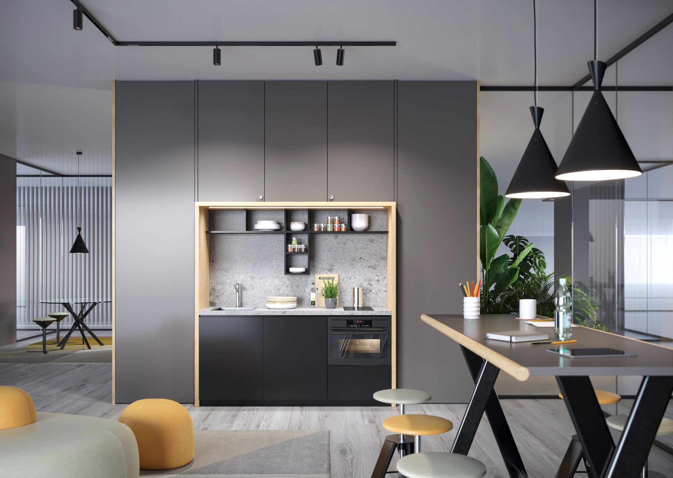 con nicchie attrezzate come modulo cucina e tavoli al posto delle scrivanie formano ambienti dal sapore domestico.