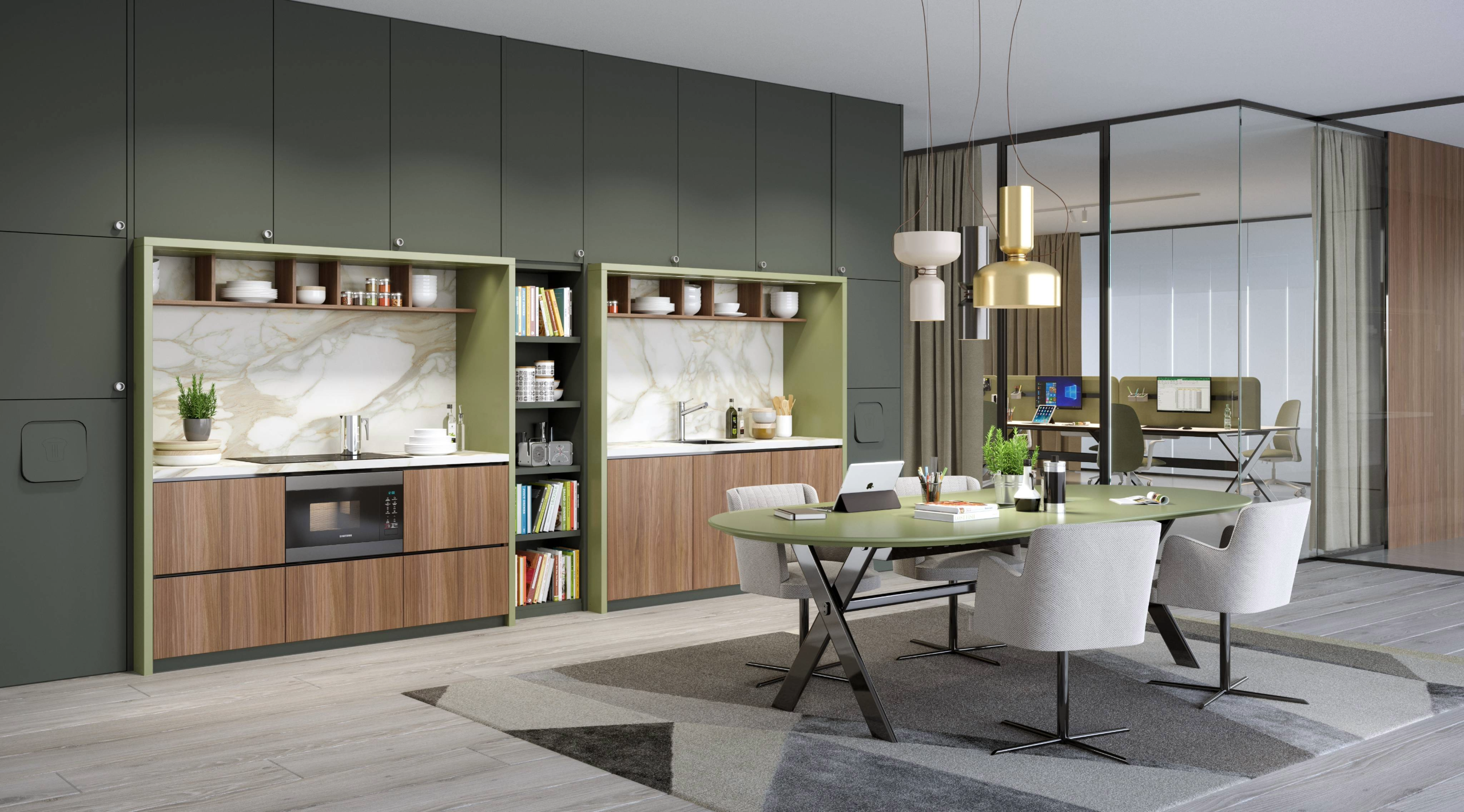 La commistione tra spazi operativi ed aree break informali è ormai un must dei moderni workplace. L’utilizzo di pareti