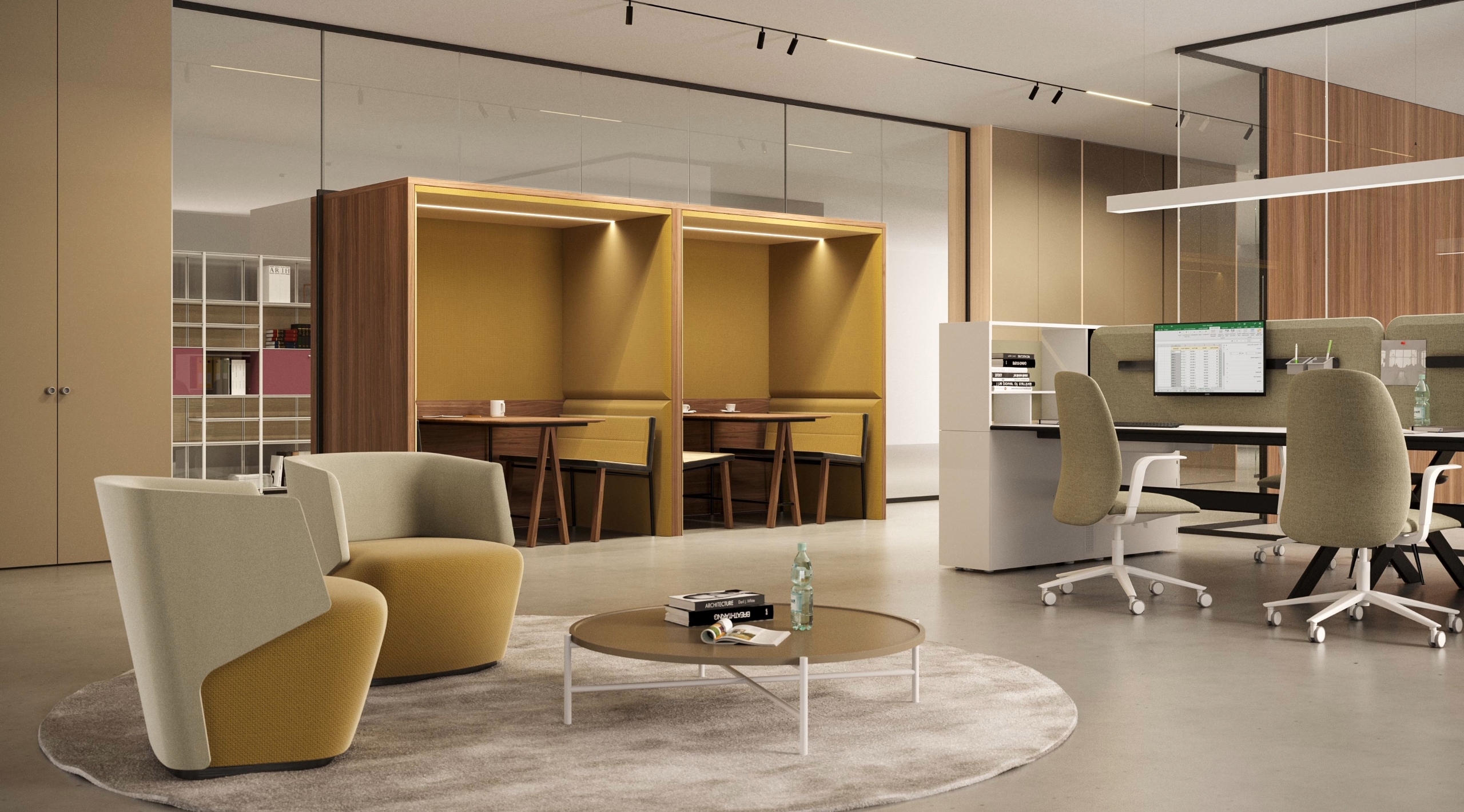 Ogni elemento è progettato per integrarsi con continuità architettonica, fissato da pavimento a soffitto e dotato di sistemi fonoassorbenti. Il risultato è un’architettura interna dinamica e versatile, in cui le interpareti non si limitano a dividere gli ambienti, ma li arricchiscono con funzioni essenziali per il benessere e la produttività quotidiana.