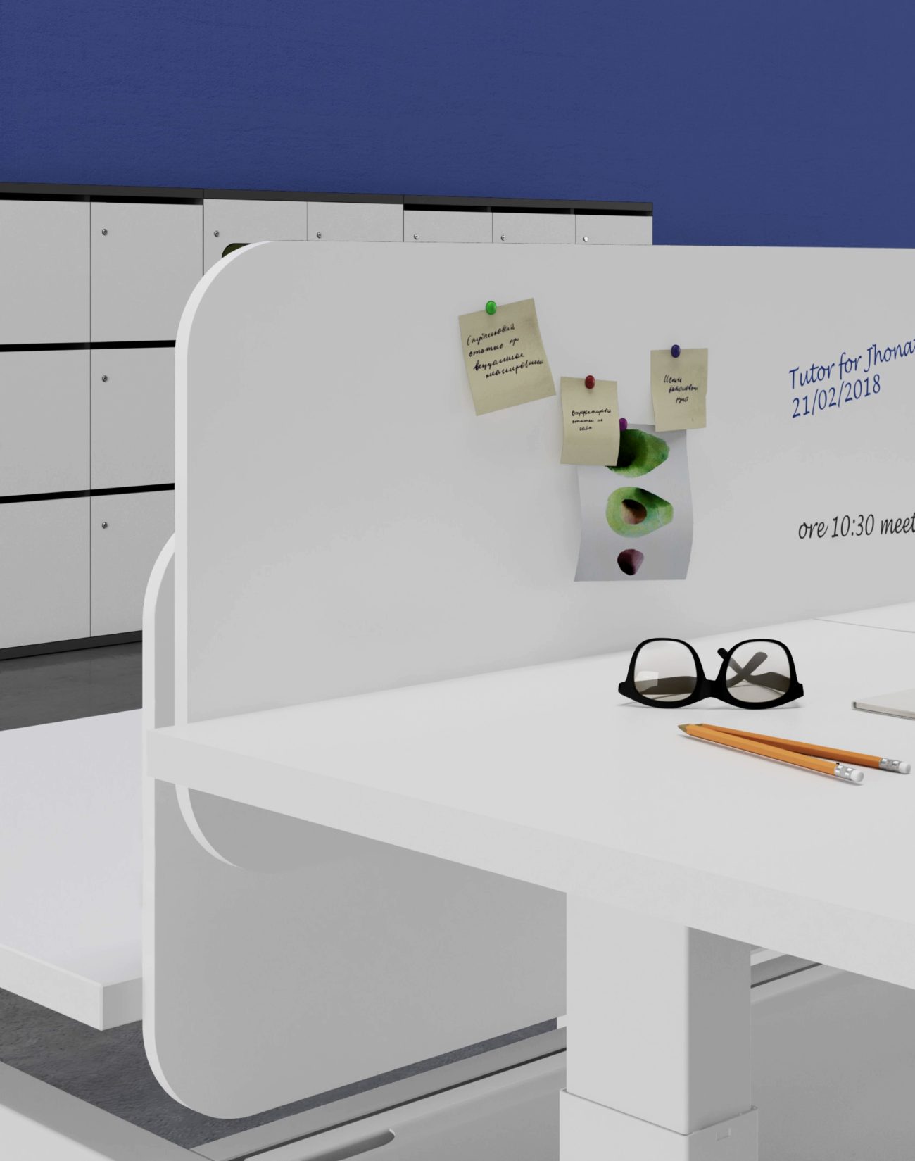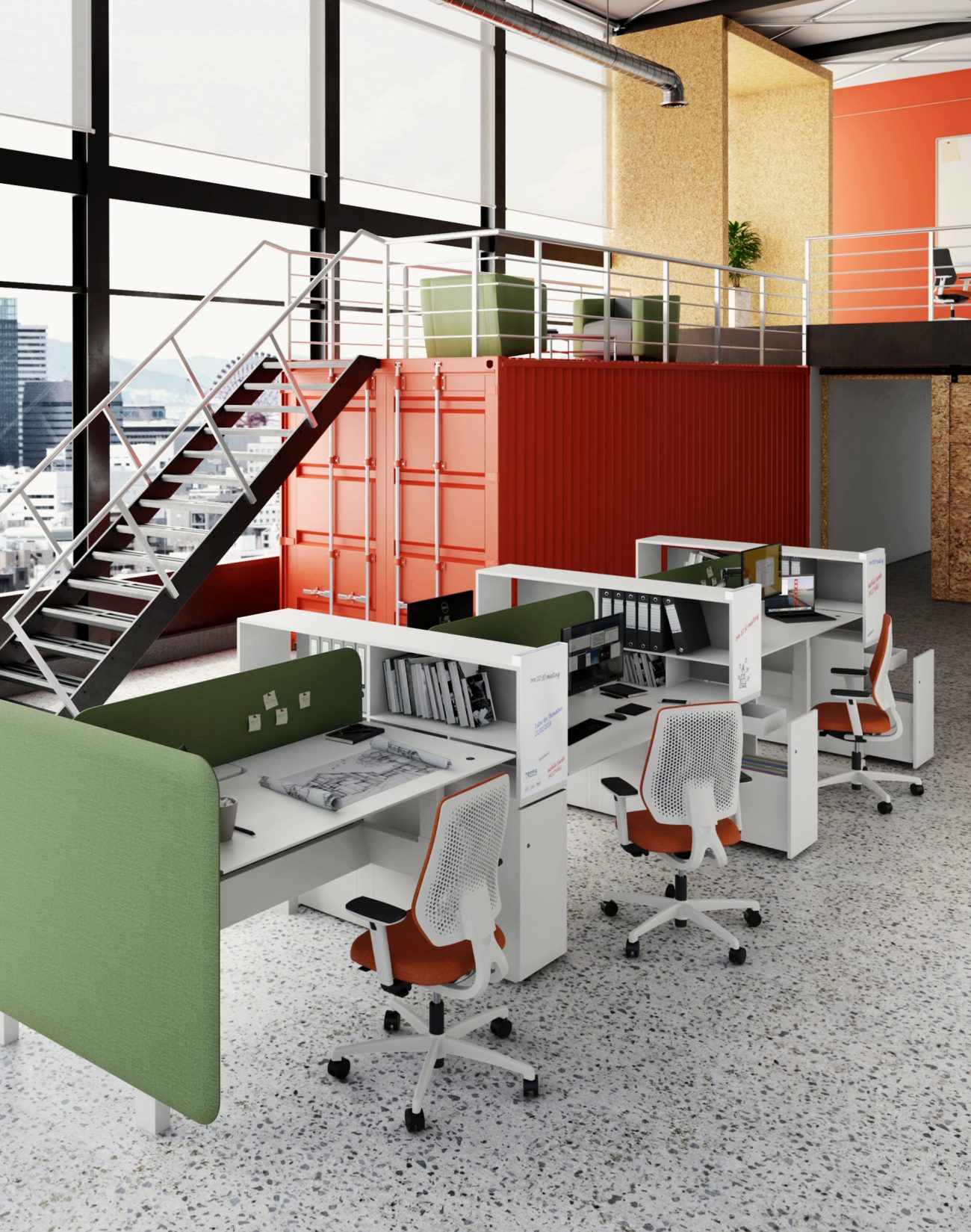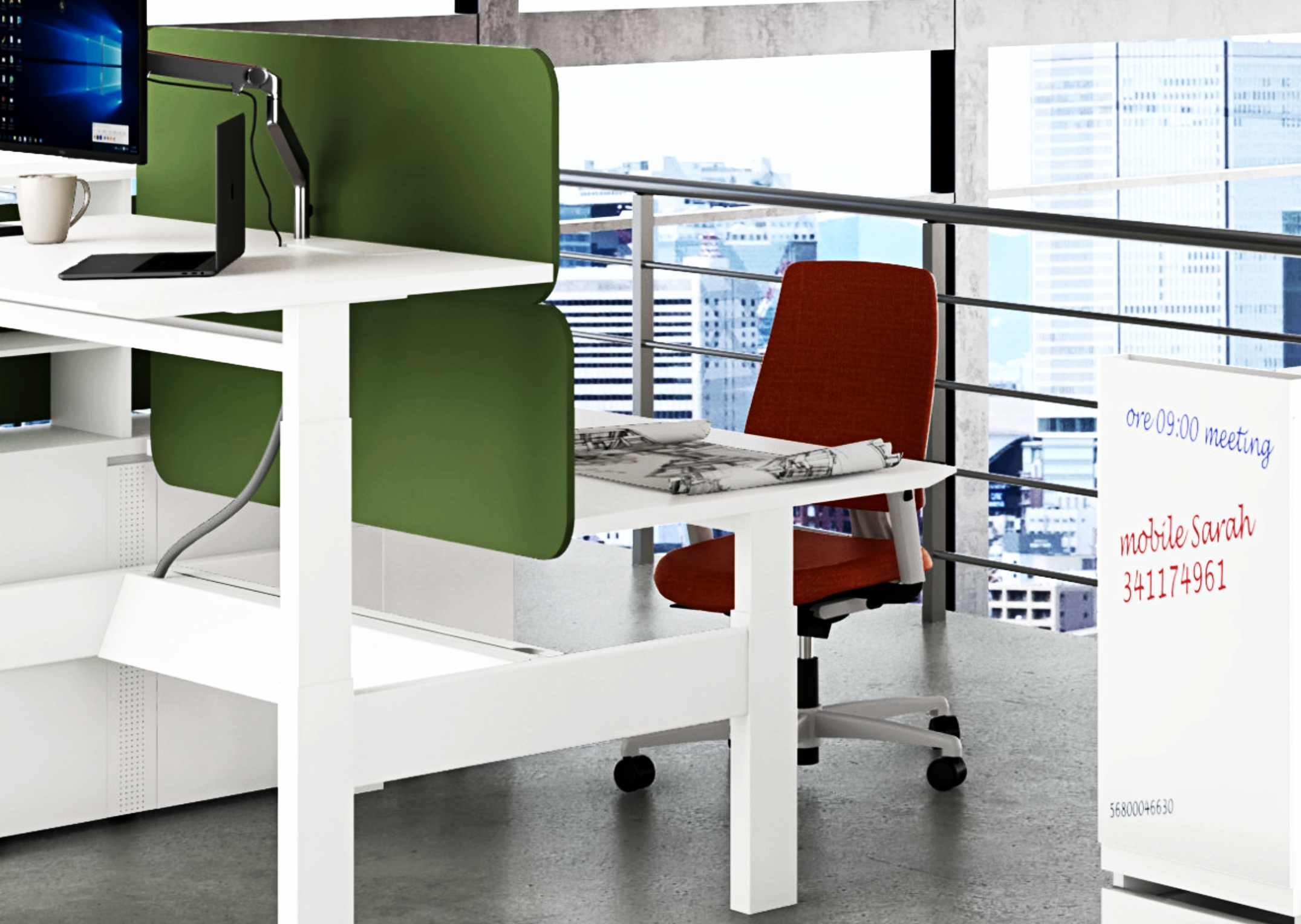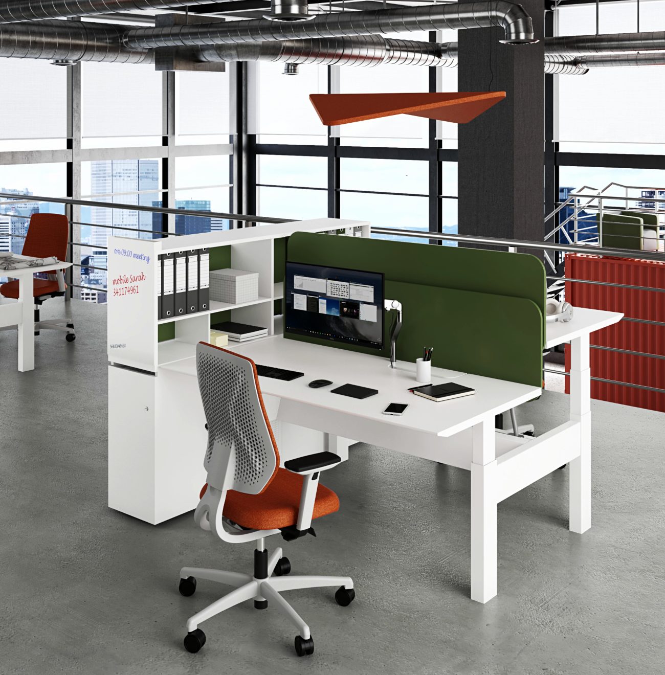L’insieme consente la creazione di postazioni operative a piano elevabile in altezza (range 60-125 cm)
