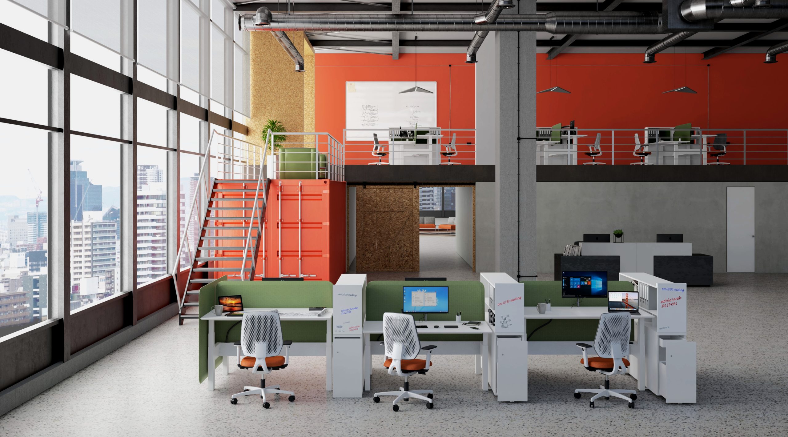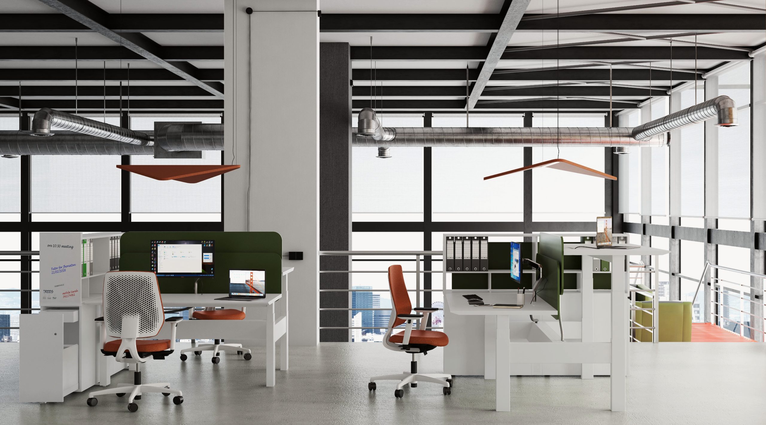 L’insieme consente la creazione di postazioni operative a piano elevabile in altezza (range 60-125 cm)