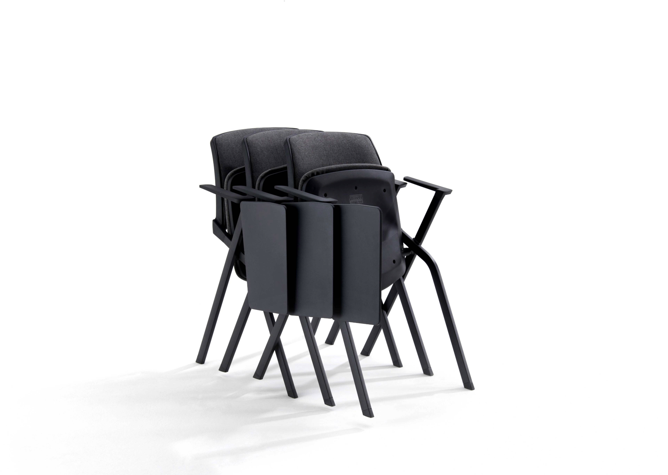 La versione con sedile ribaltabile è impilabile anche orizzontalmente (ad eccezione di quelle con tavoletta laterale).