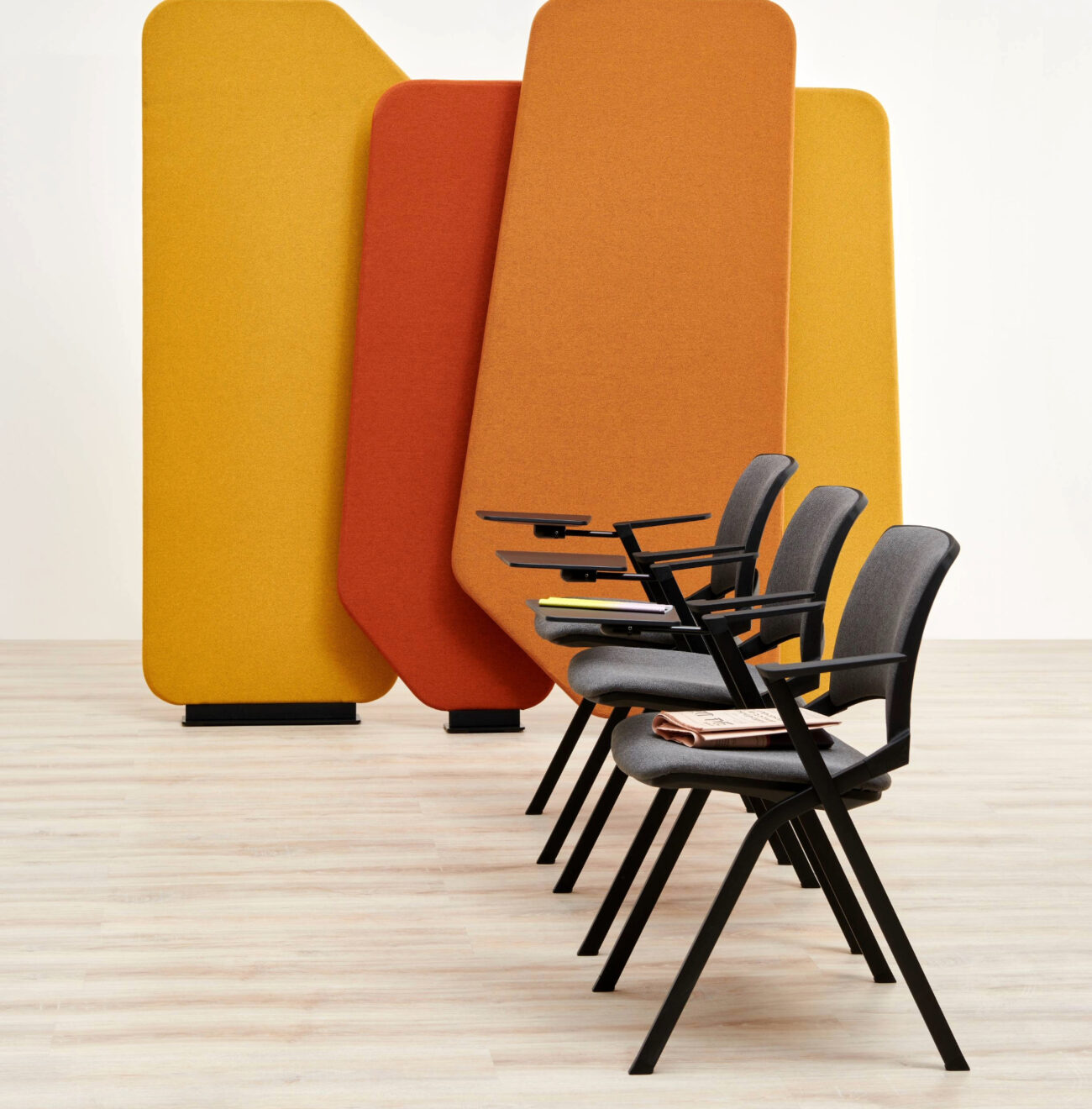 Seduta polifunzionale per spazi collettivi, impilabile verticalmente.