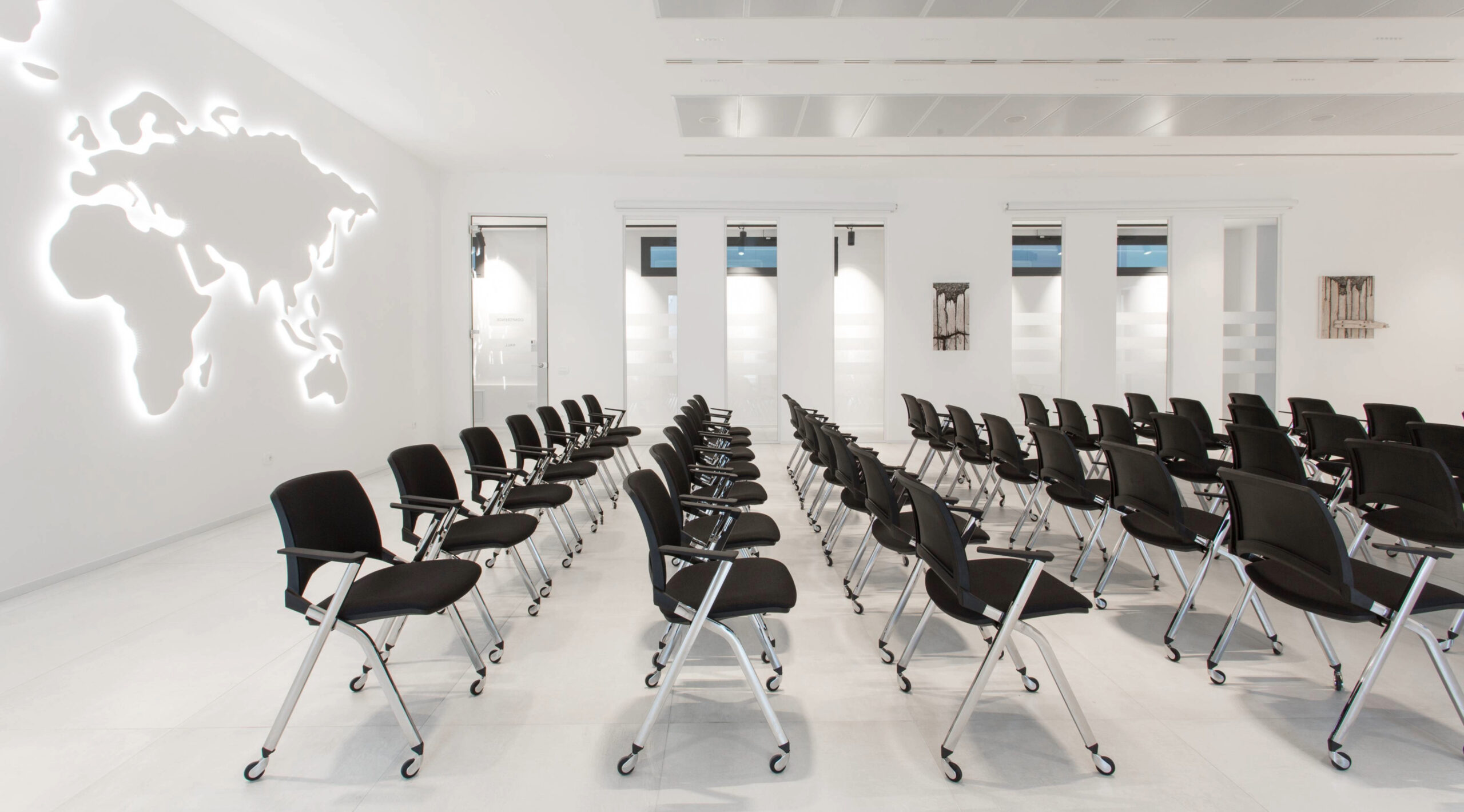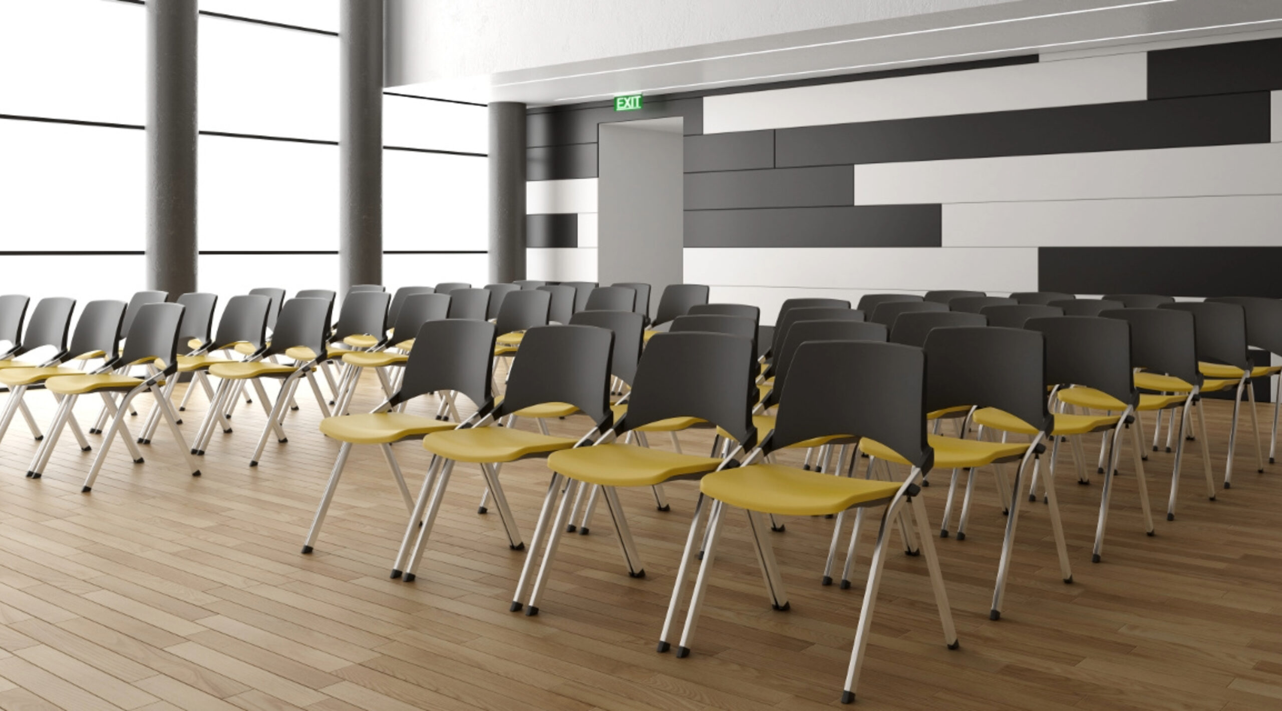 Seduta polifunzionale per spazi collettivi, impilabile verticalmente.