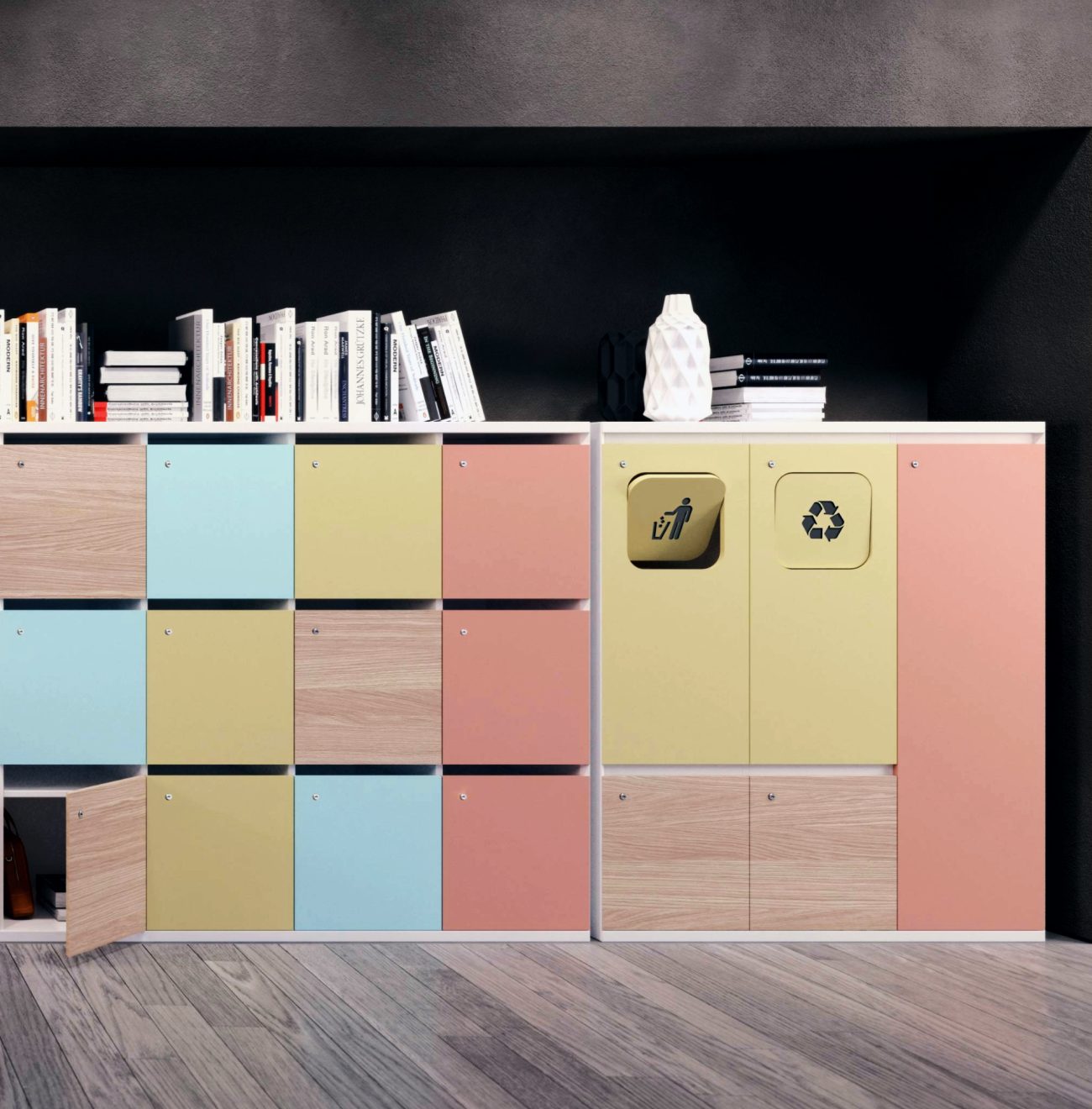 Sono disponibili in composizioni da 3 a 16 box e con moduli a tutta altezza