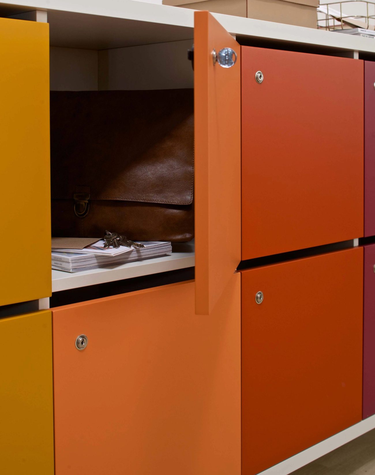 Tutte le ante sono dotate di serratura; disponibili su richiesta la serratura con codice e con badge RFID.