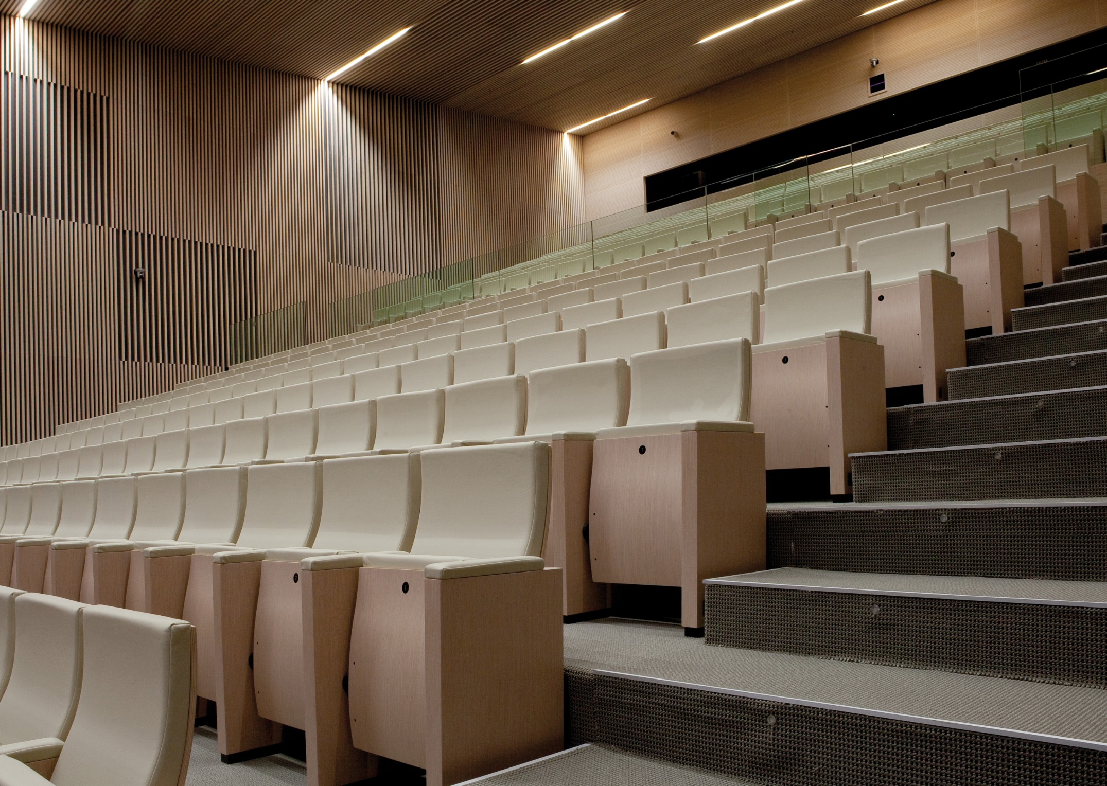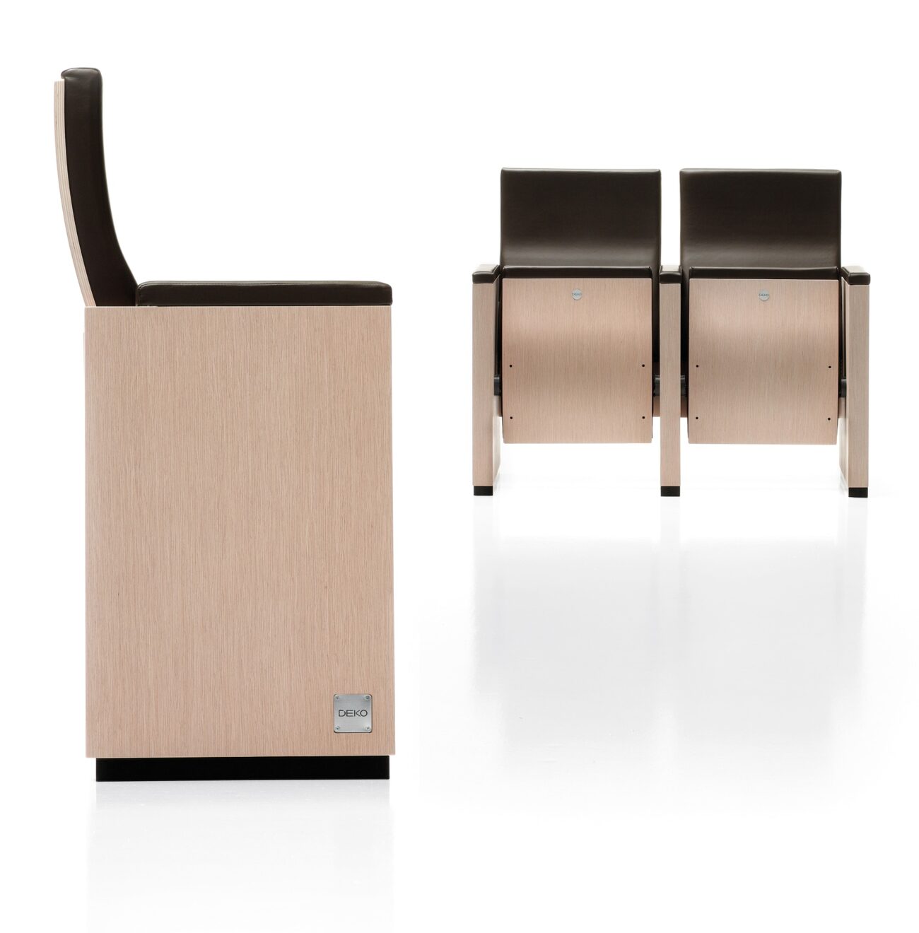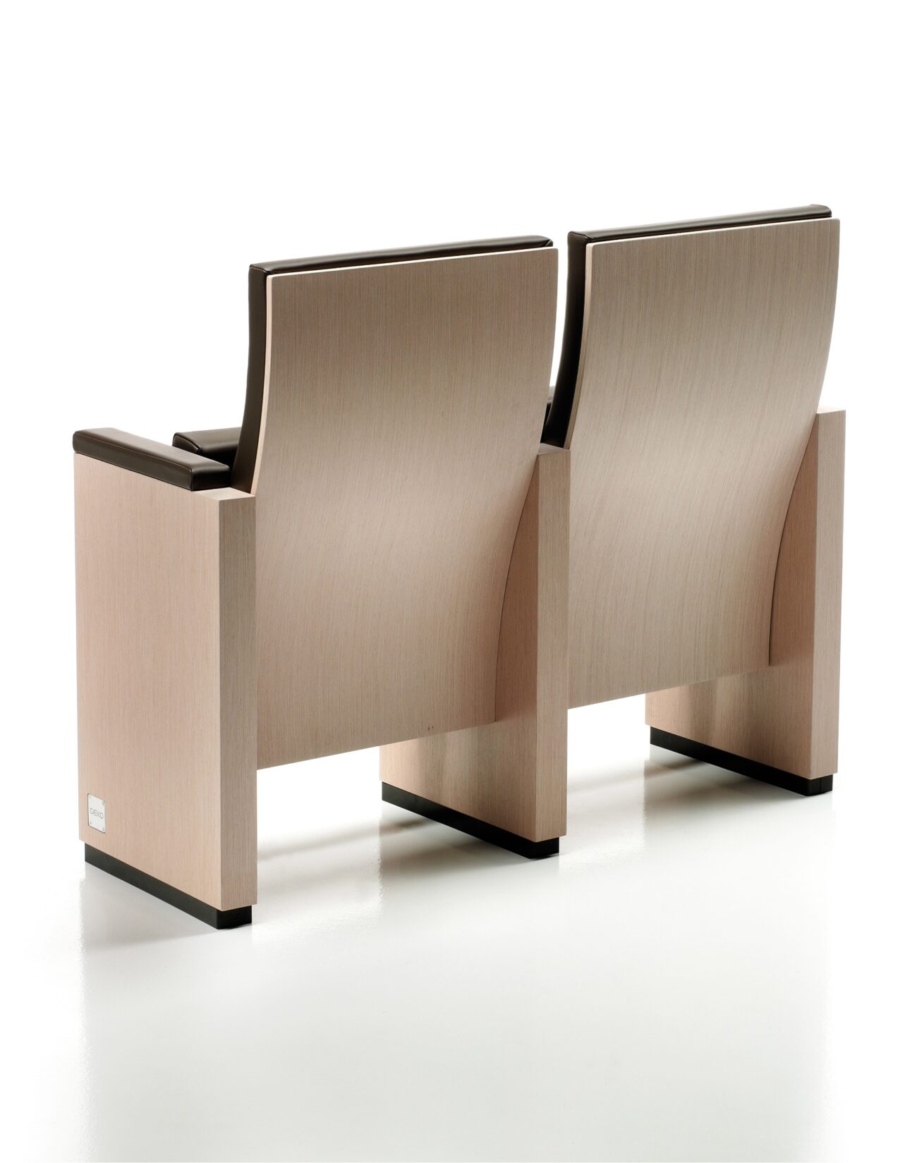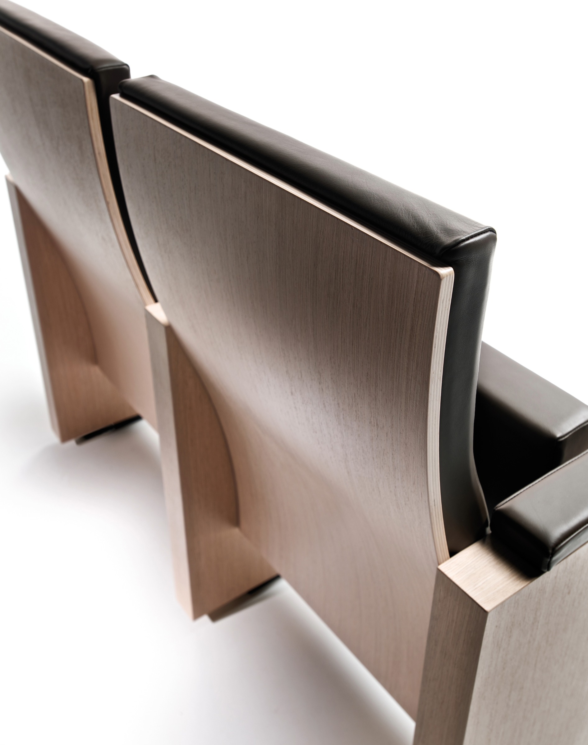 Poltrona dall’aspetto rigoroso dove lo schienale e il sottosedile in legno curvato rompono la rigidità delle forme. La sinuosità dello schienale oltre ad essere una scelta estetica è soprattutto ergonomica perché aumenta il comfort della seduta supportando lo spettato re durante le ore di permanenza nella sala.
