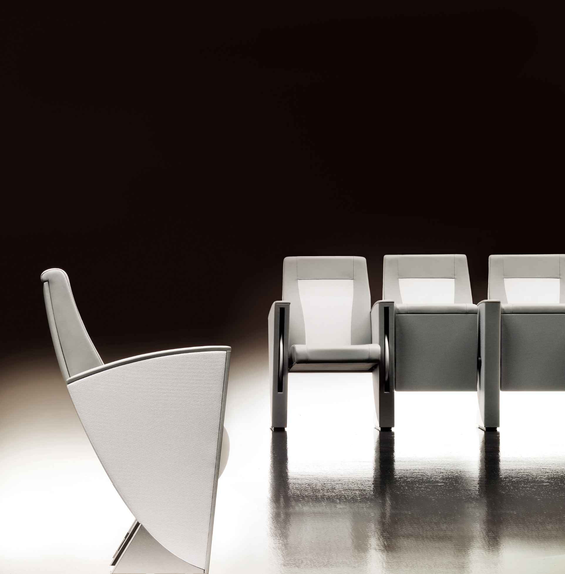 Musa è la poltrona tecnologica disegnata da Marco Piva per Sale Congressi, Sale Conferenze ed Auditorium.