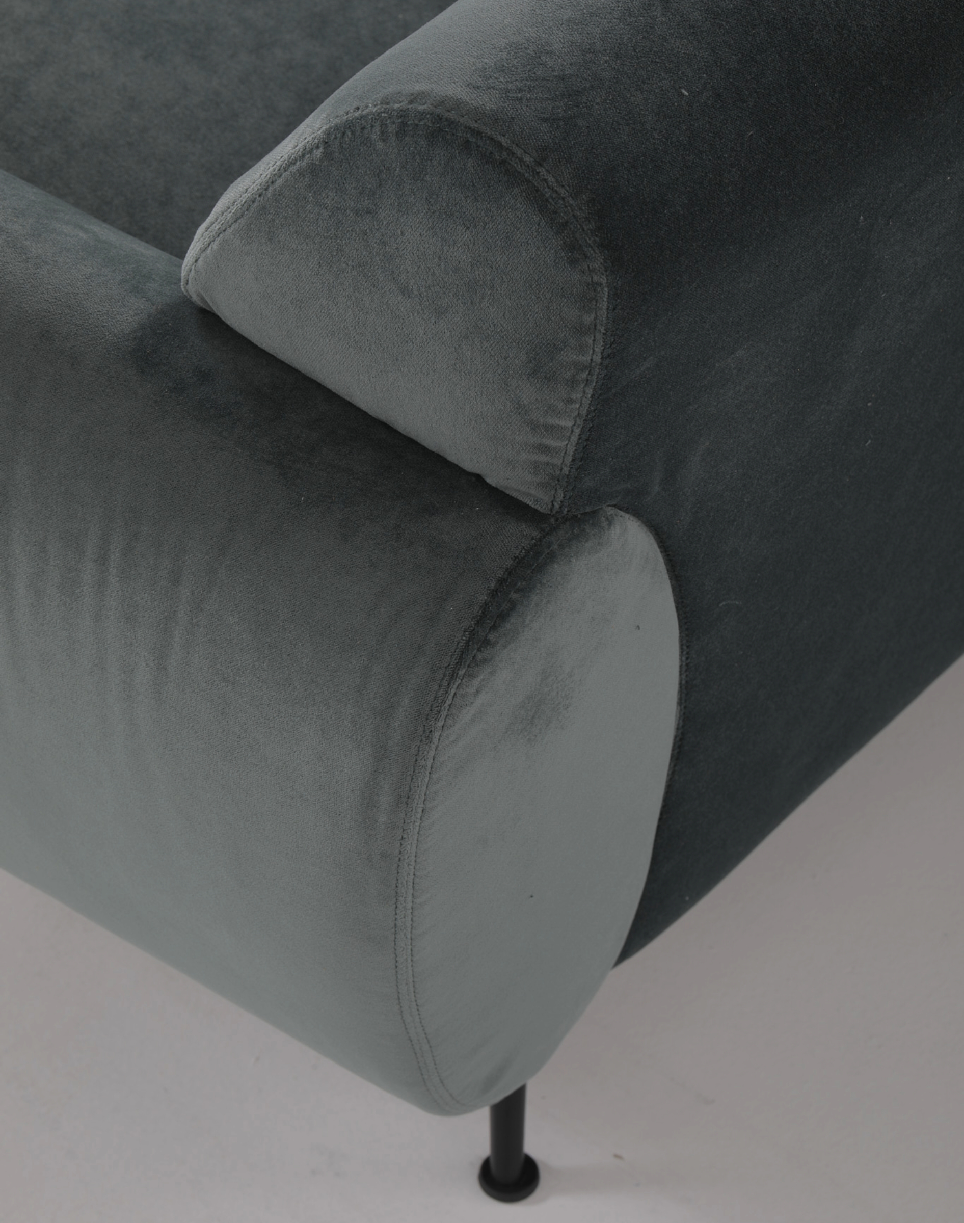 con piedini in Ottone ed imbottitura in poliuretano espanso ignifugo.