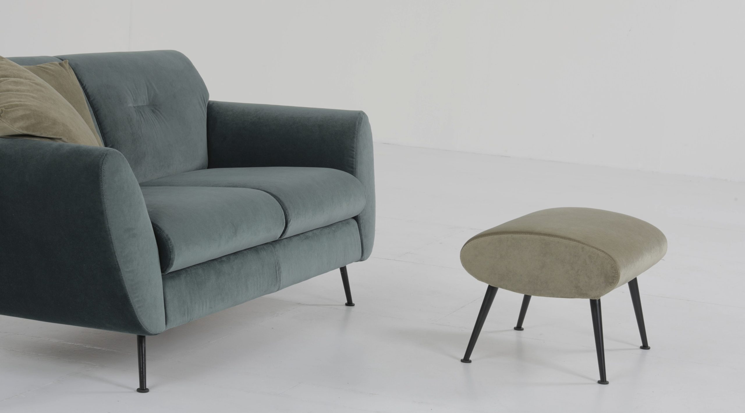 con piedini in Ottone ed imbottitura in poliuretano espanso ignifugo.