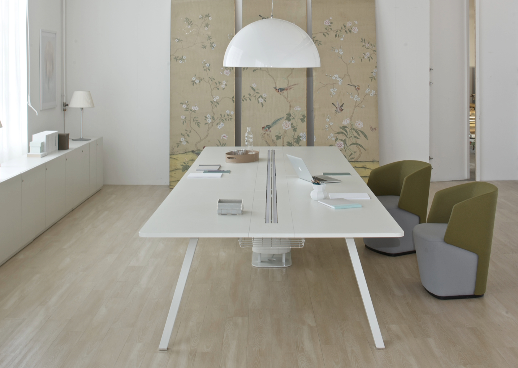 Tutte le composizioni sono predisposte per l’alloggiamento dei cavi grazie ad un’apposita vaschetta sotto piano, e possono essere dotate di accessori quali top access, barre portaoggetti, bracci portamonitor antropomorfi, porta CPU, pannelli schermo, lavagnette, vertebre passacavi, vaschette porta prese.
