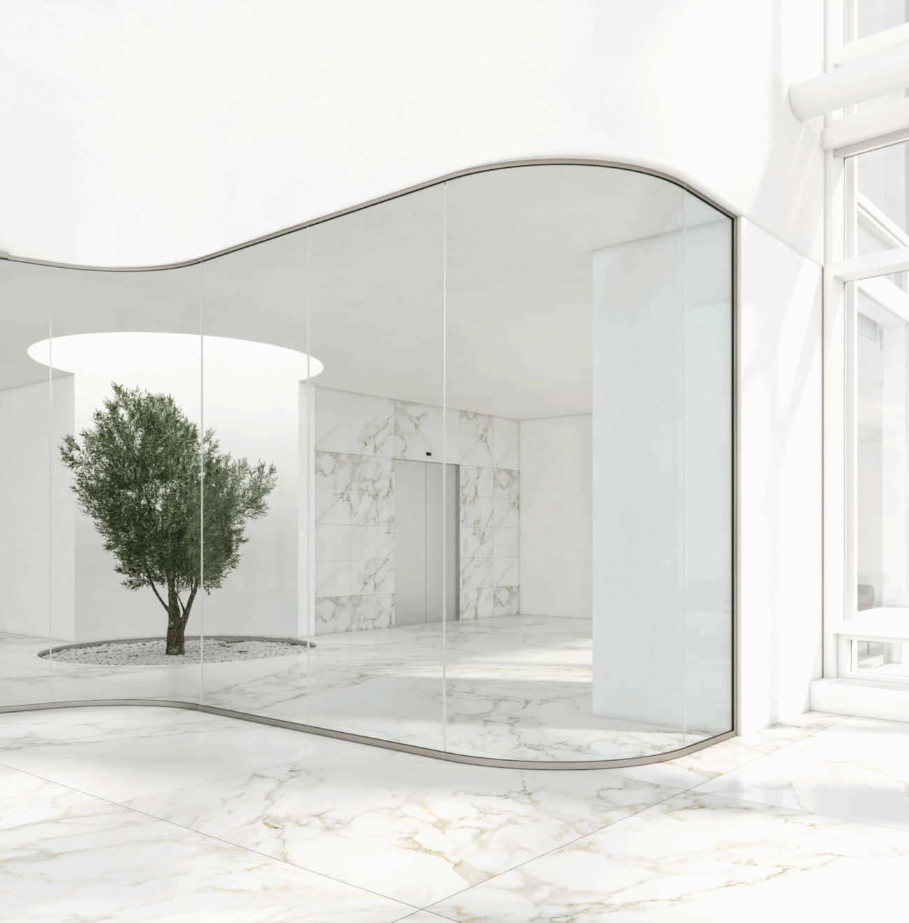 alloggiare un vetro curvo e arricchire con eleganza il progetto.