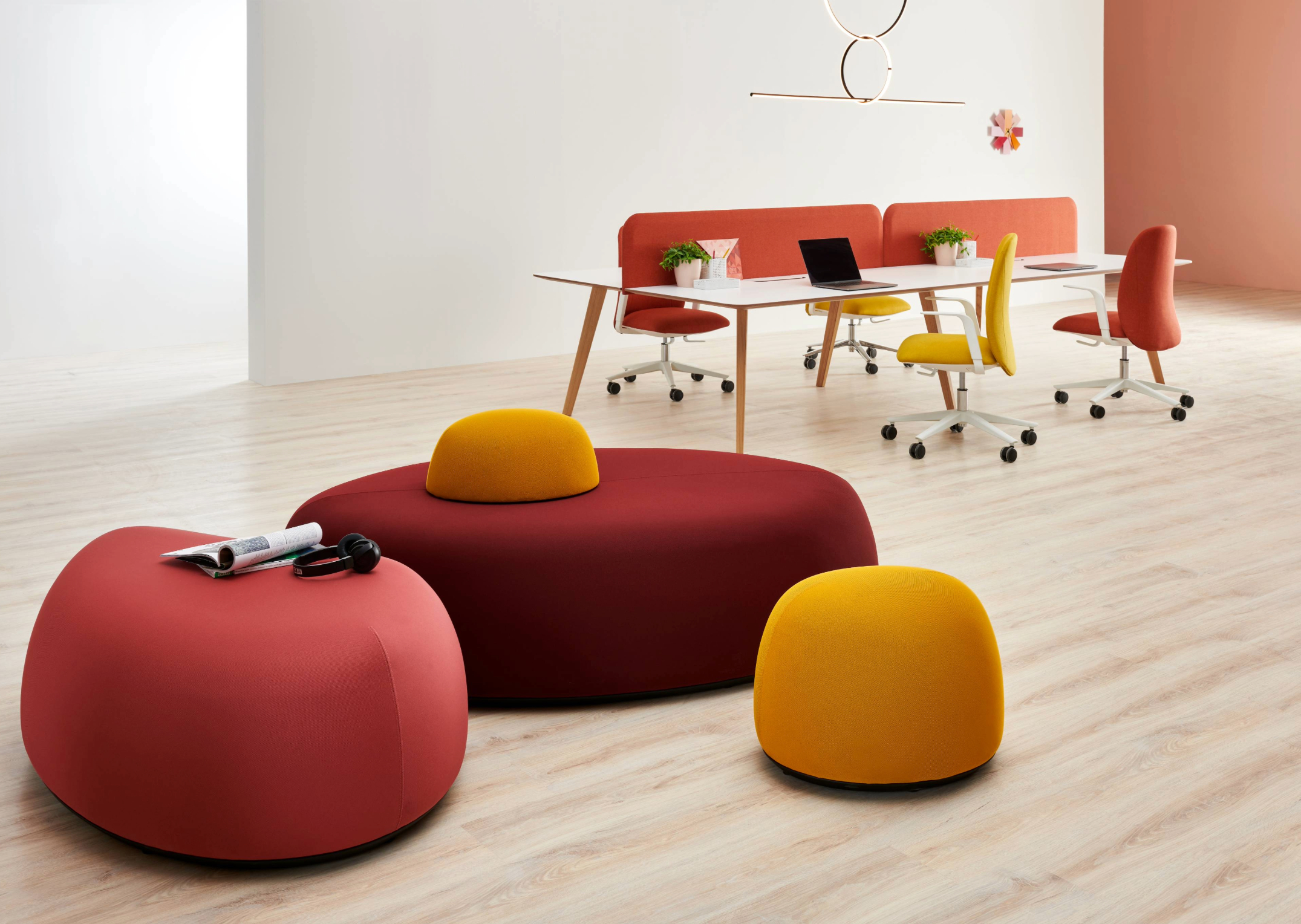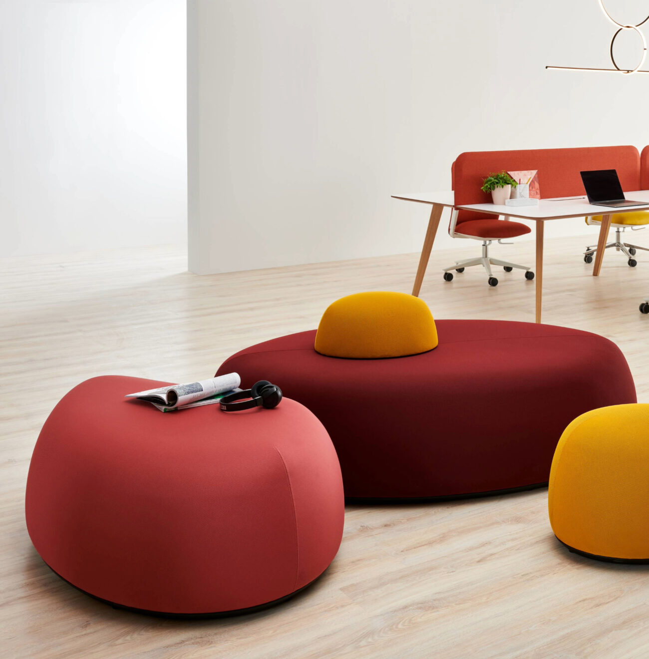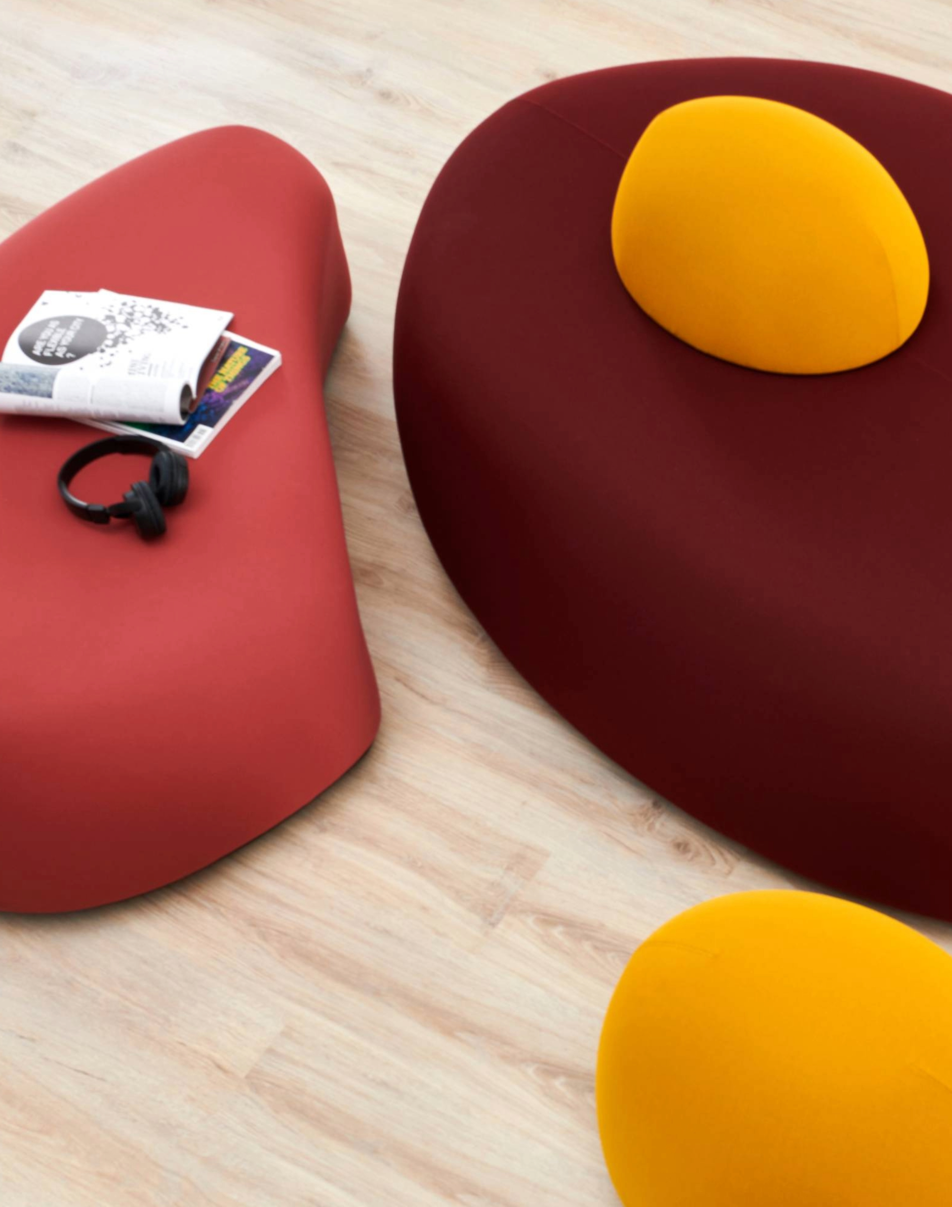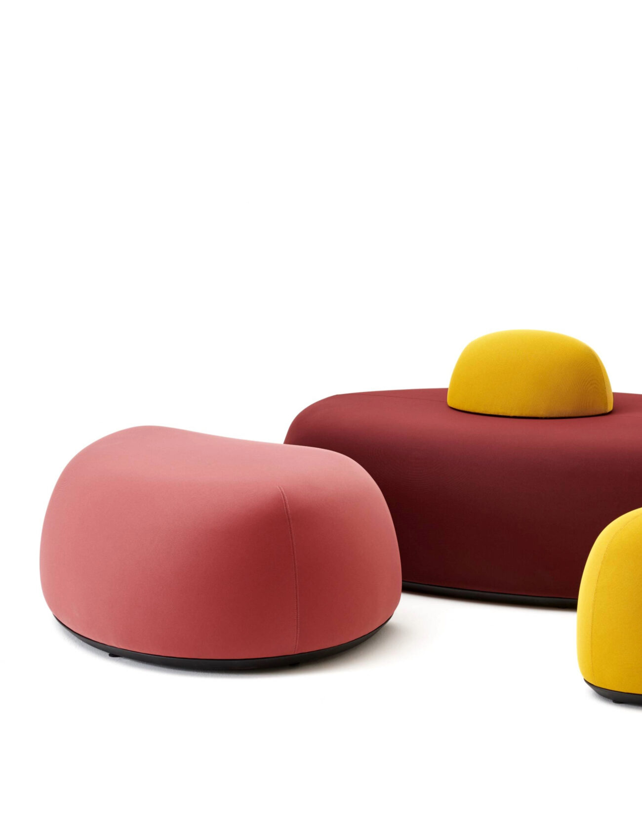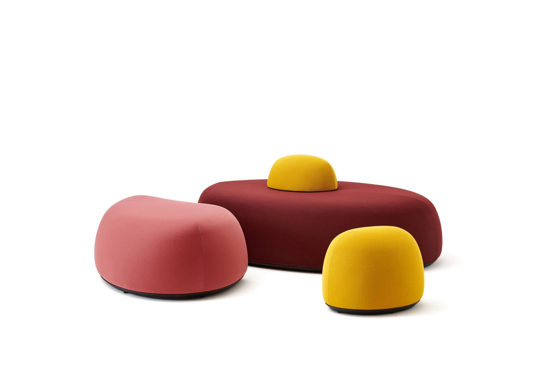 Jump è una linea di pouf composta da 3 forme curvilinee indipendenti che si combinano tra di loro. Un elemento rimovibile funge, nella dimensione più grande, da piccolo schienale.
