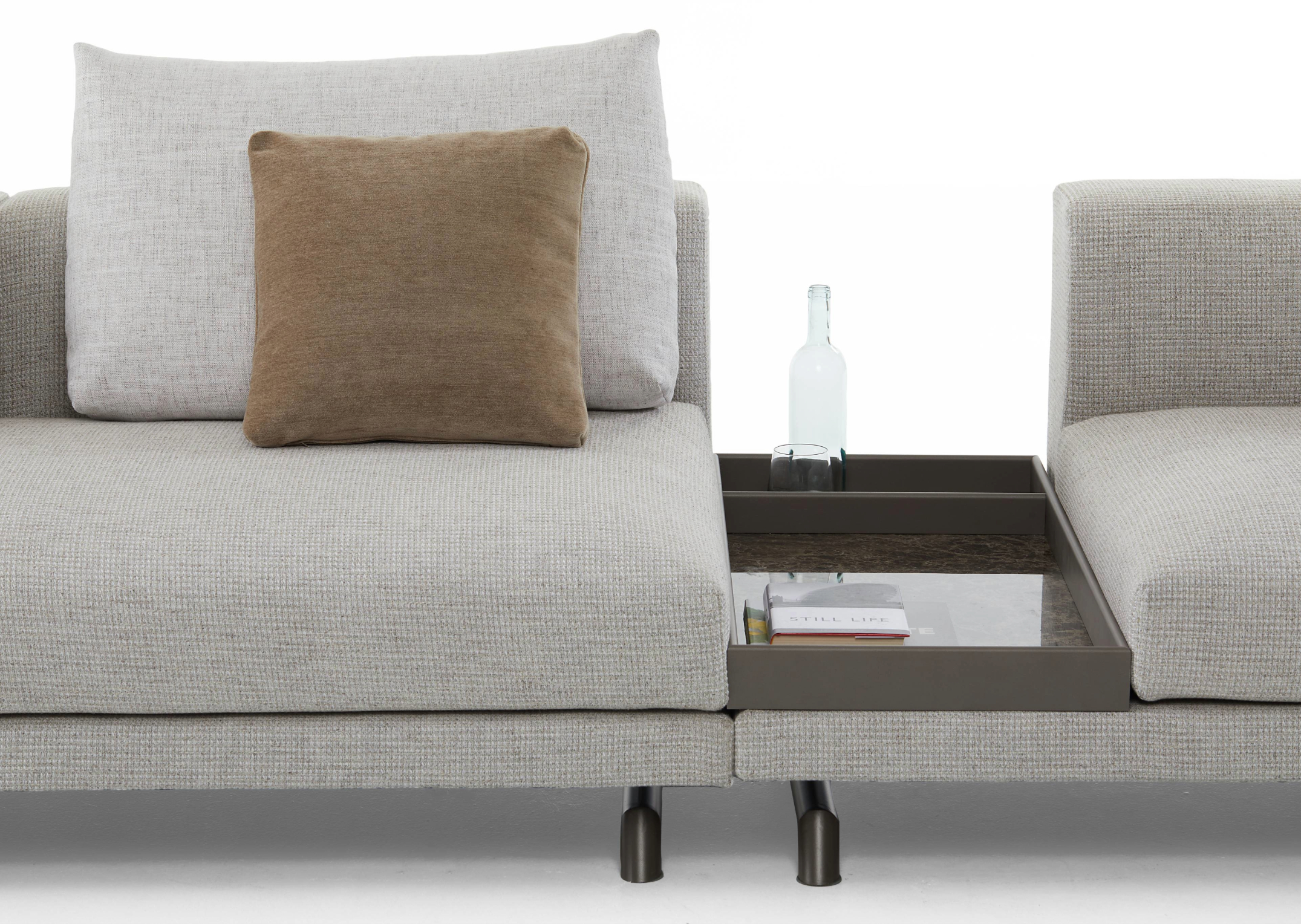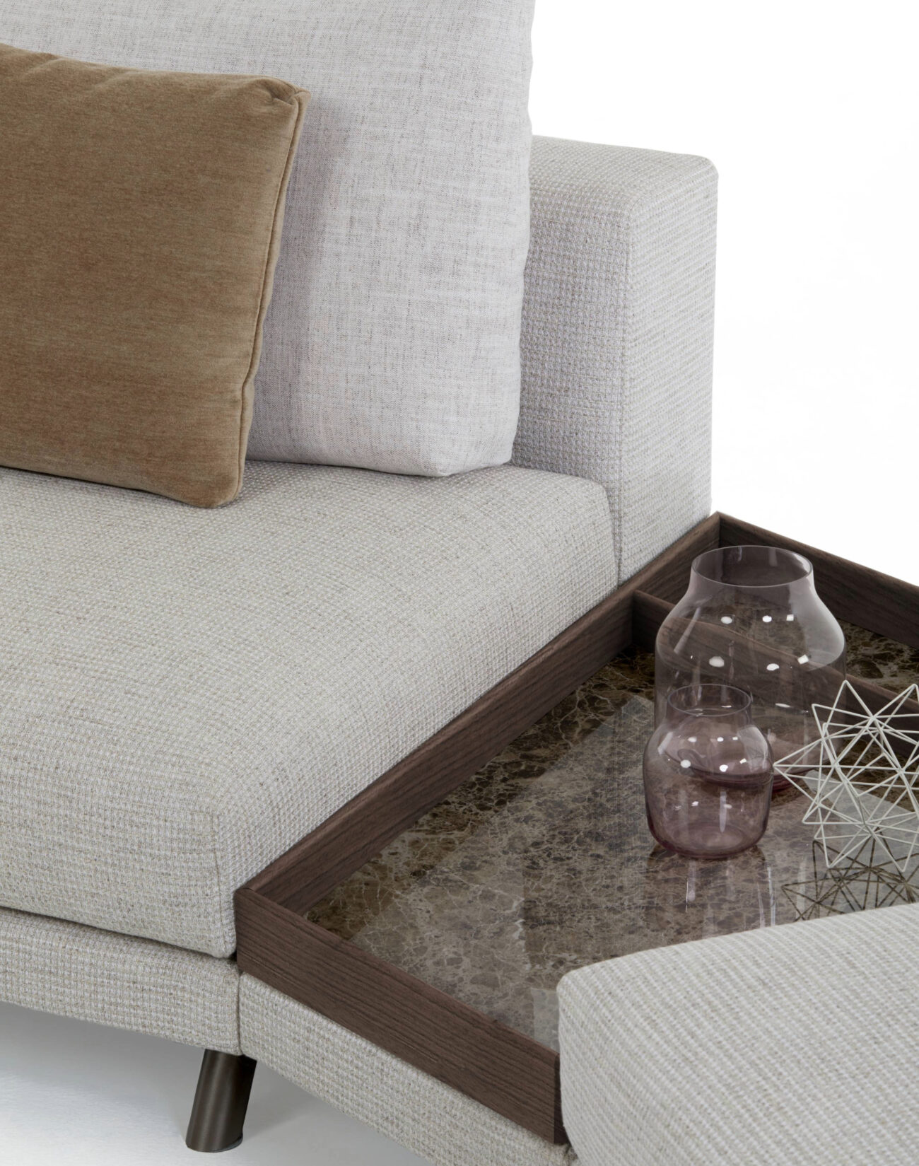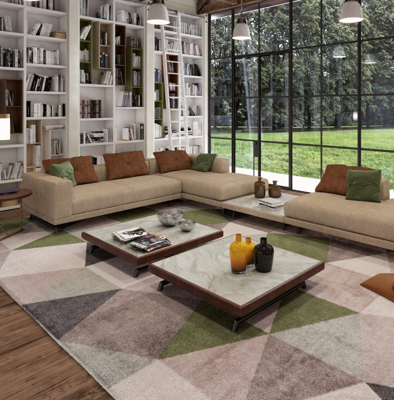 Il divano San Marino può essere integrato con tavolini laccati, in essenza o ceramica,