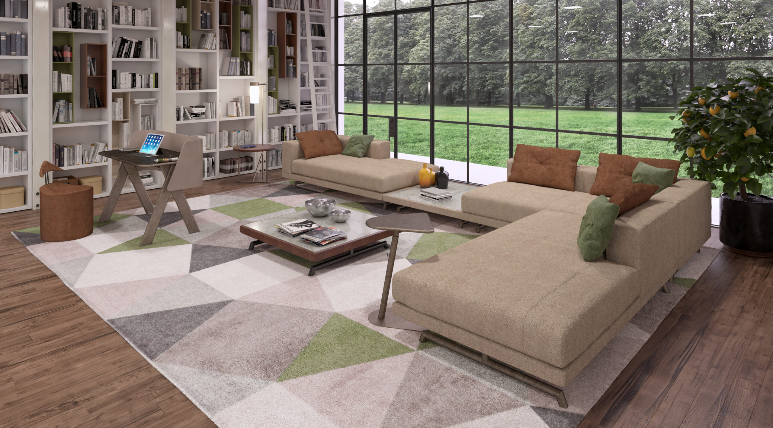 Il divano San Marino può essere integrato con tavolini laccati, in essenza o ceramica,