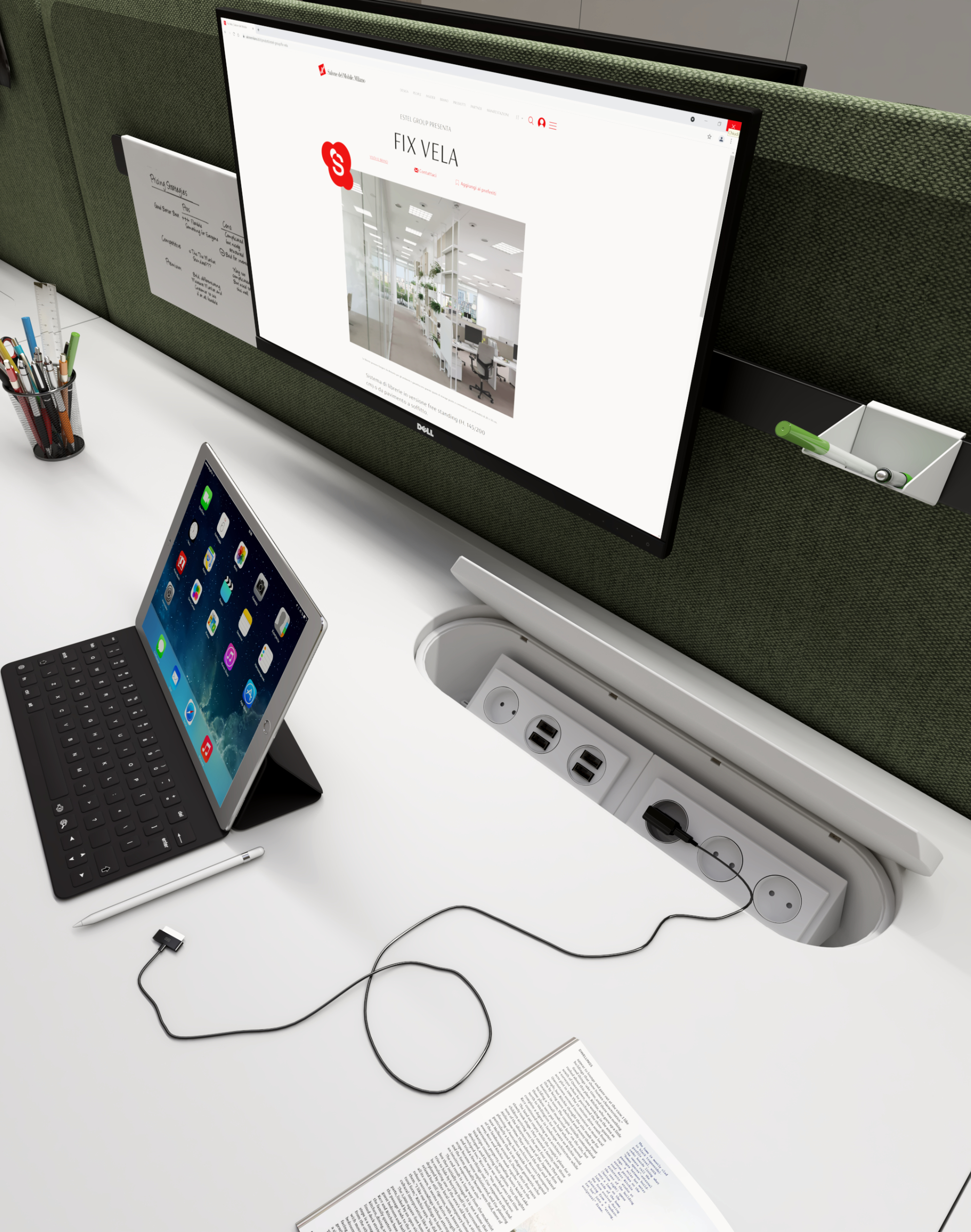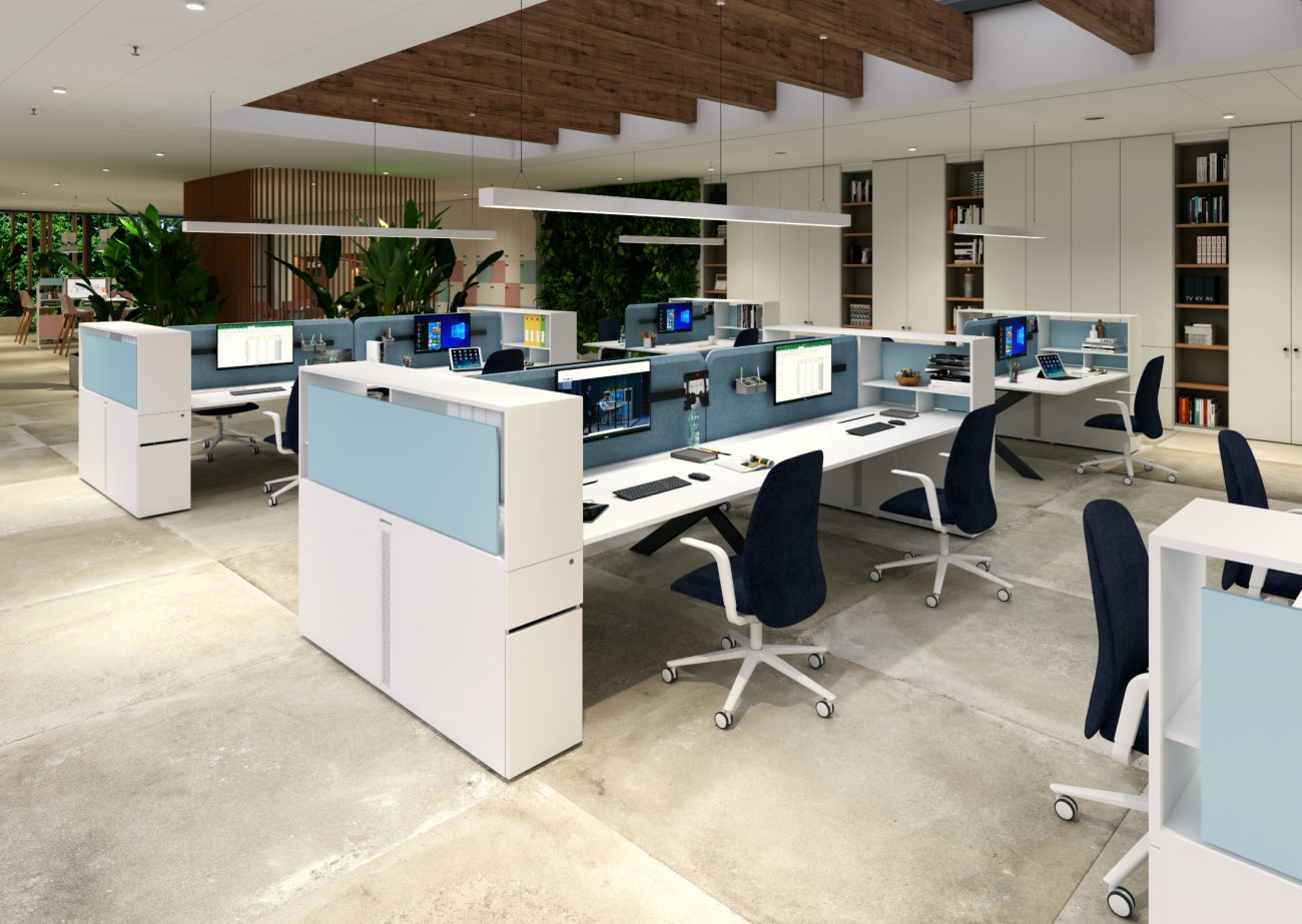 È una famiglia completa di arredi che spaziano dalle scrivanie operative,