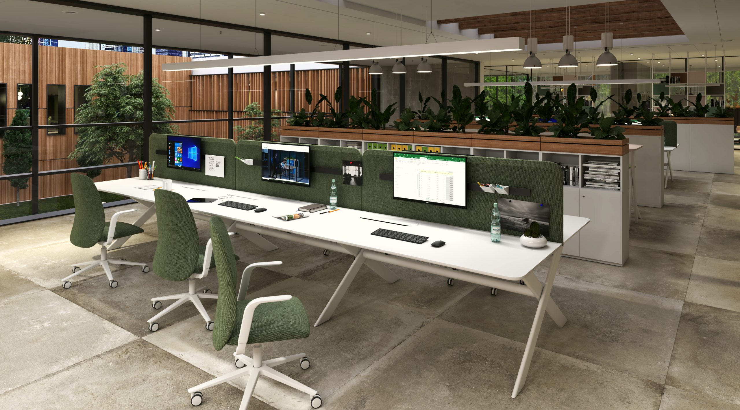 ai bench, ai tavoli riunione, alle scrivanie direzionali, ai Banko H105.