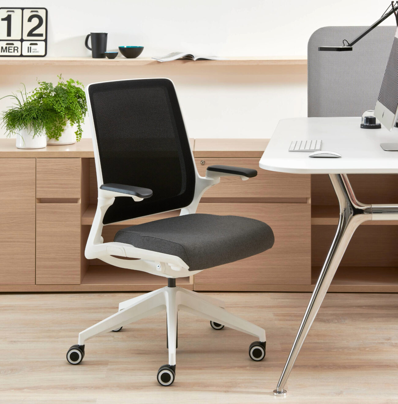 Self è una sedia operativa eclettica e moderna, caratterizzata da volumi semplici e un disegno pulito.