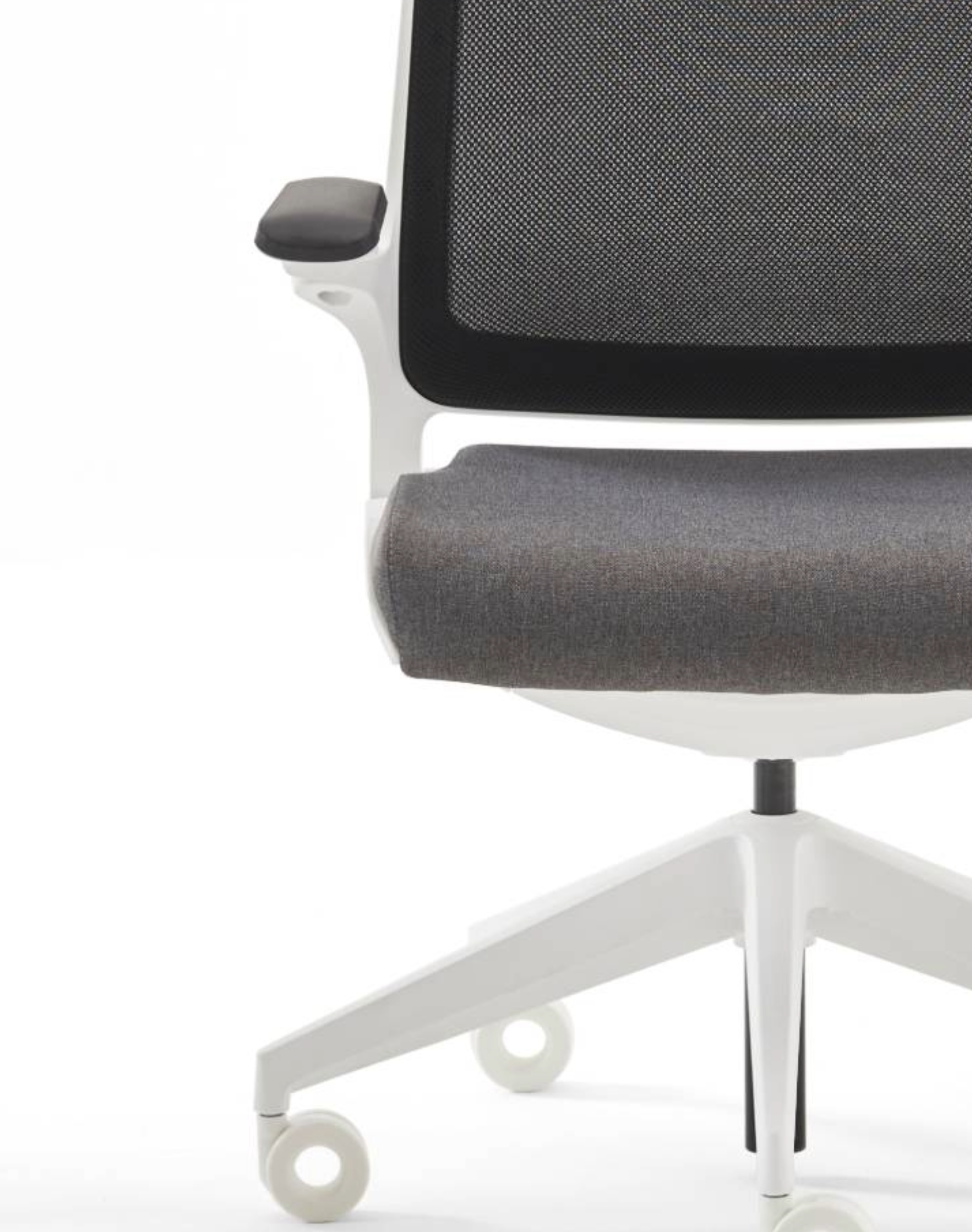 Lo schienale in rete la rende la seduta per eccellenza dei moderni spazi per il lavoro, mentre la versione in pelle o tessuto si adatta agli uffici più formali.
