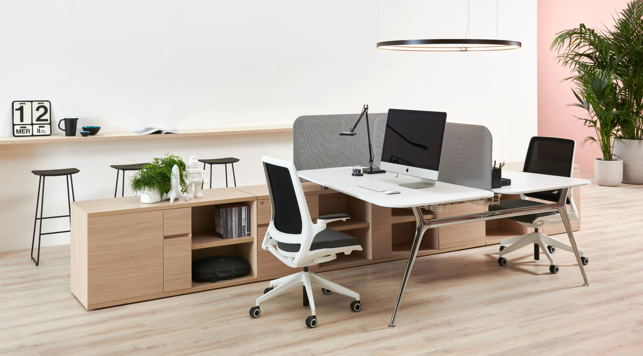 Lo schienale in rete la rende la seduta per eccellenza dei moderni spazi per il lavoro, mentre la versione in pelle o tessuto si adatta agli uffici più formali.