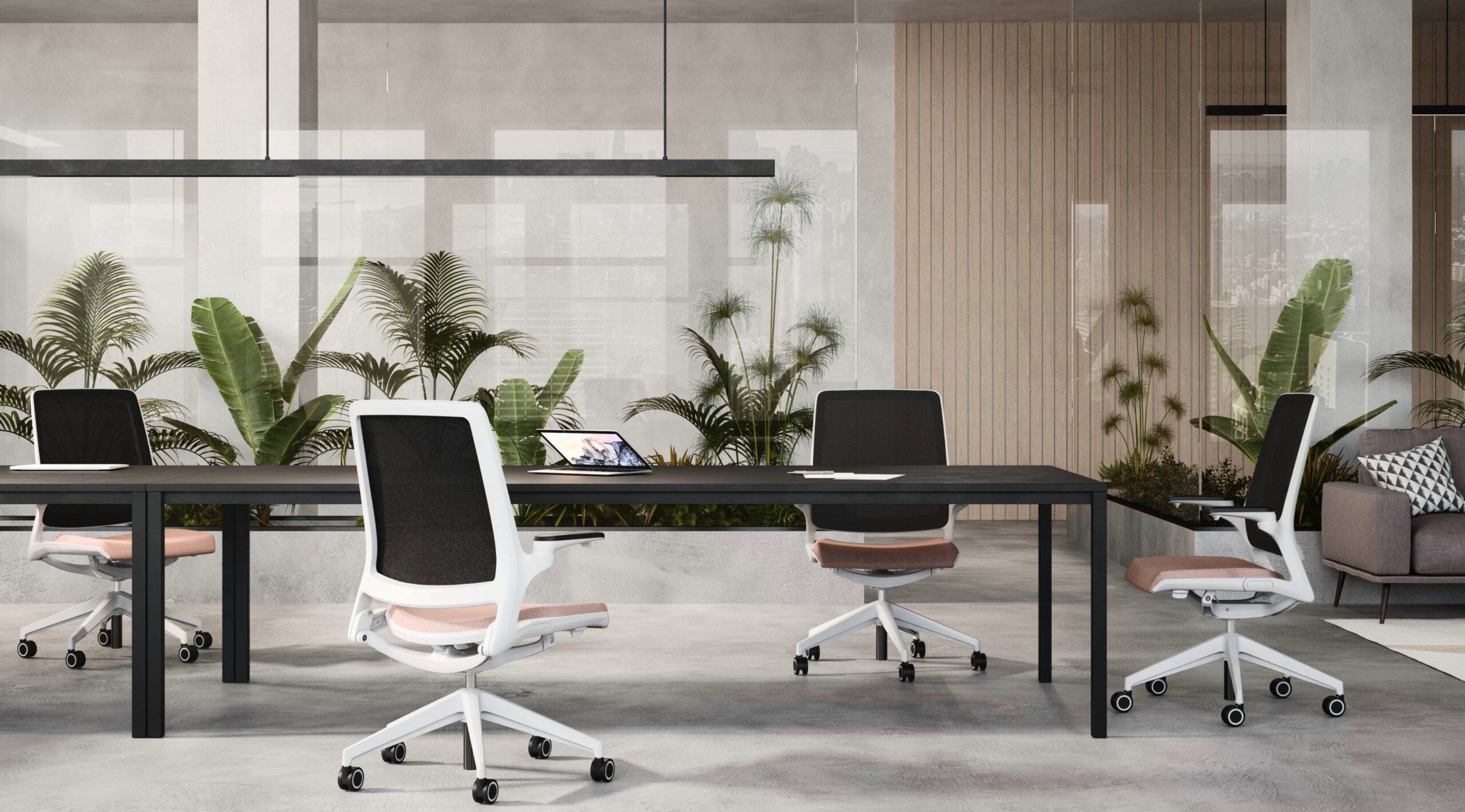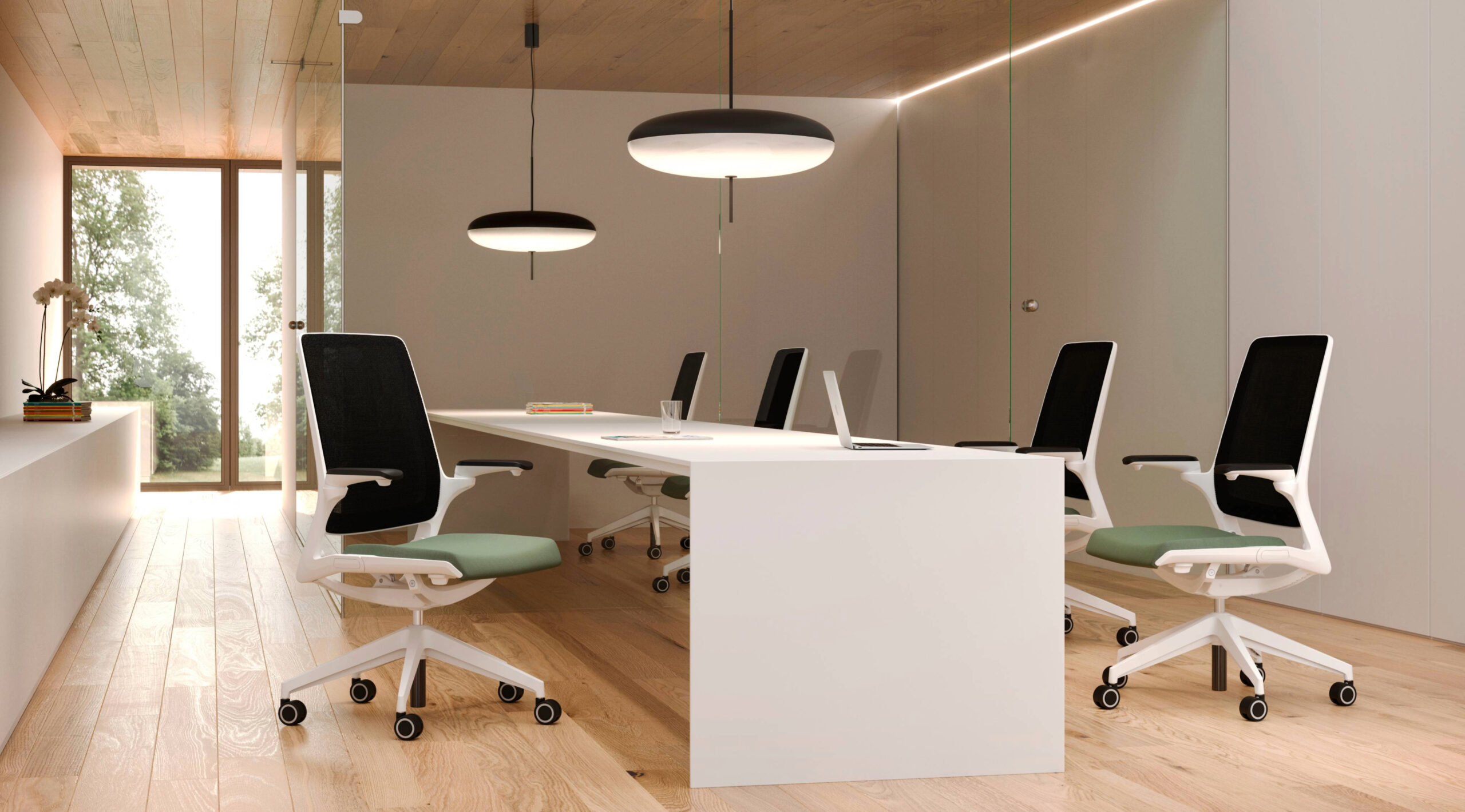Self è una sedia operativa eclettica e moderna, caratterizzata da volumi semplici e un disegno pulito.