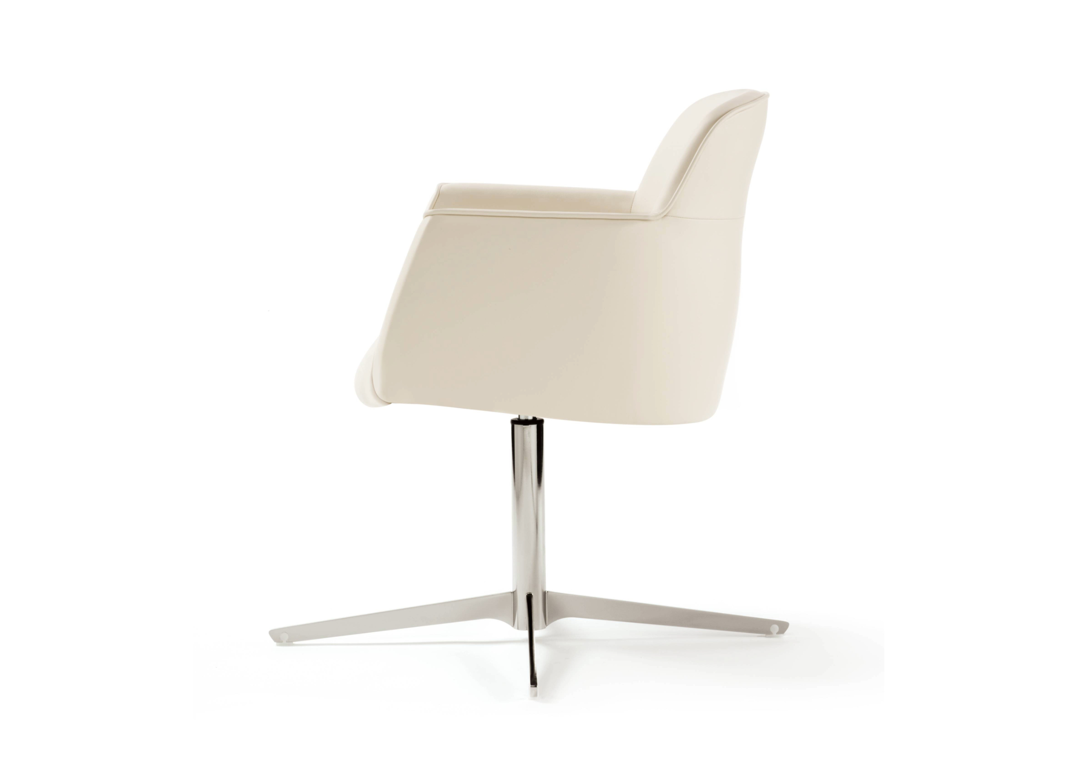 Il modello Tulip Cannetè ridefinisce il concetto di seduta girevole integrando dettagli di alta sartoria applicati all’arredo.