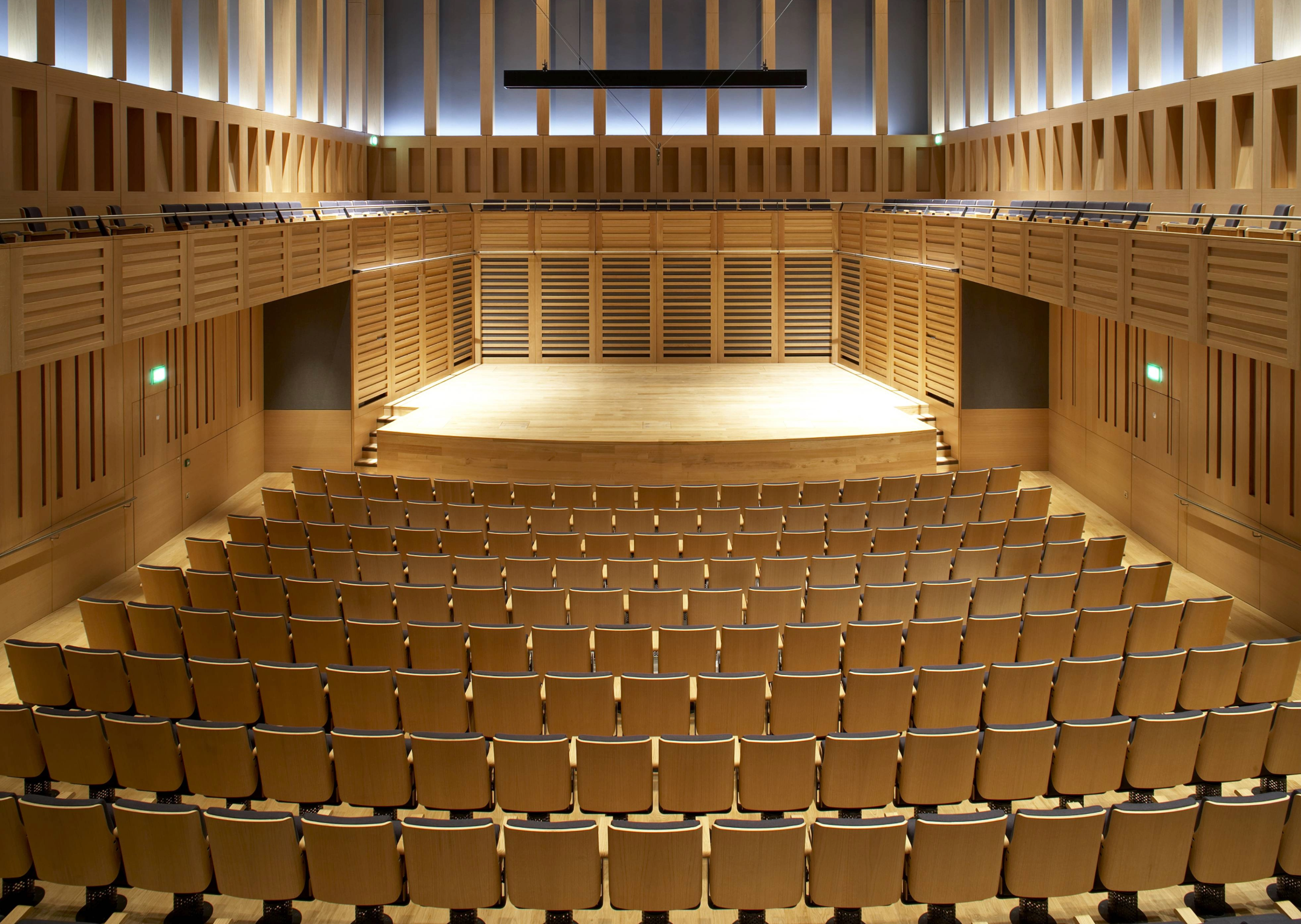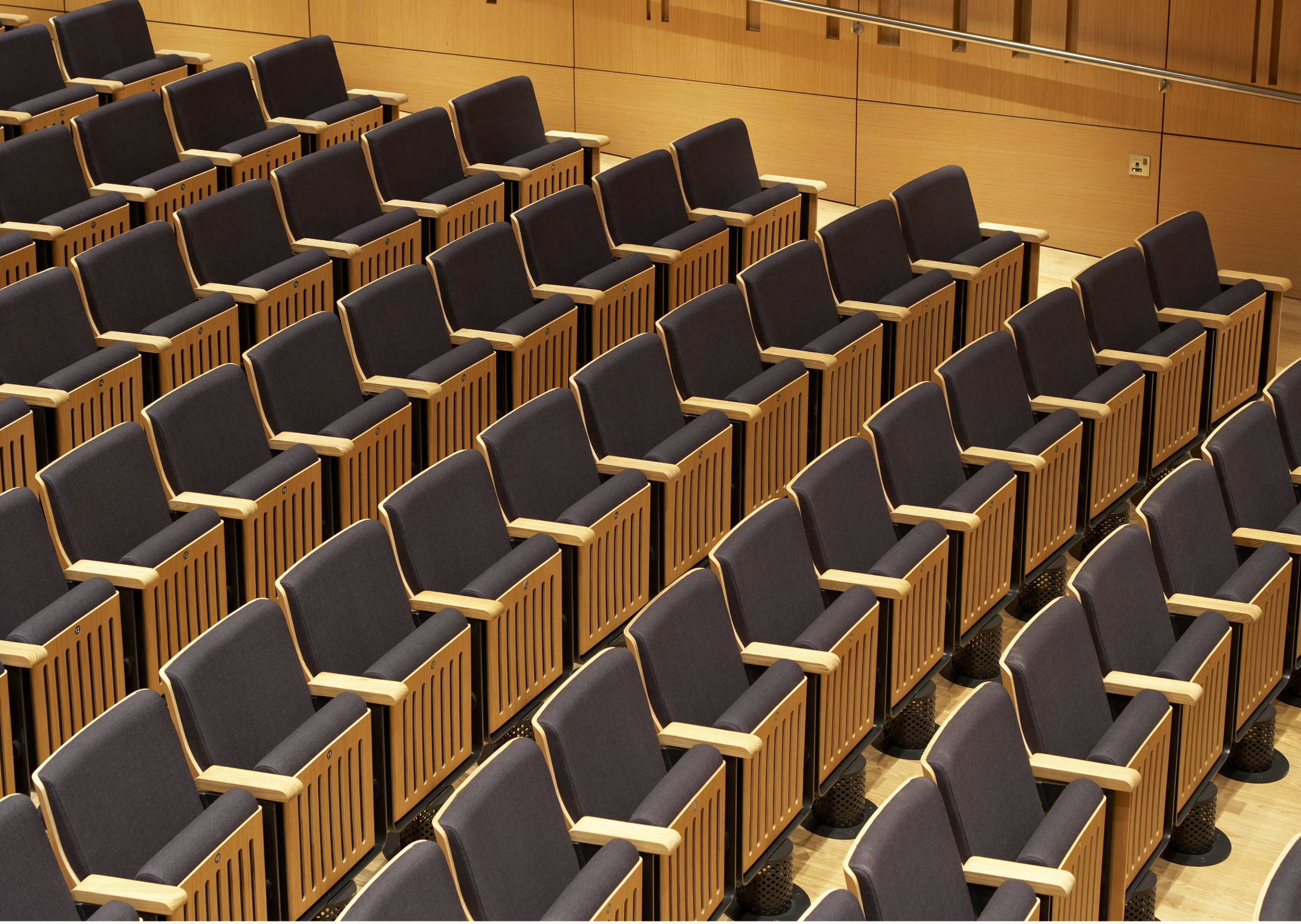 Deko ha allestito la Kings Hall, auditorium supremo, con 430 sedute essenziali e dal design scultoreo, dalle straordinarie caratteristiche fonoassorbenti. L’originale piede di sostegno funge anche da cilindro di aerazione.​