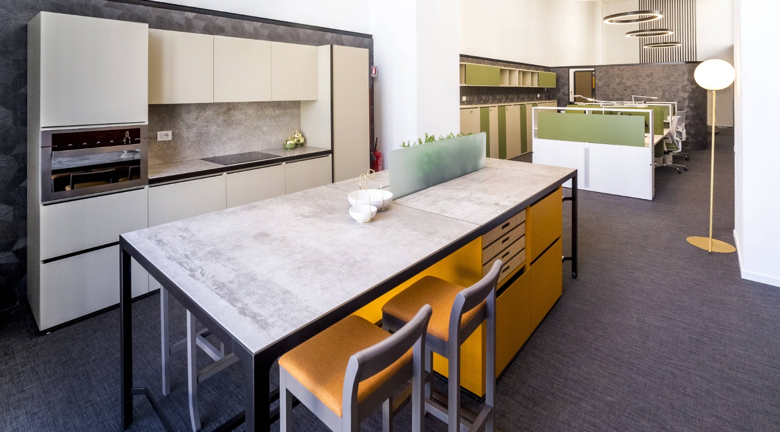 Ogni showroom è progettato per offrire un’immersione completa nel mondo dell’arredamento ufficio,