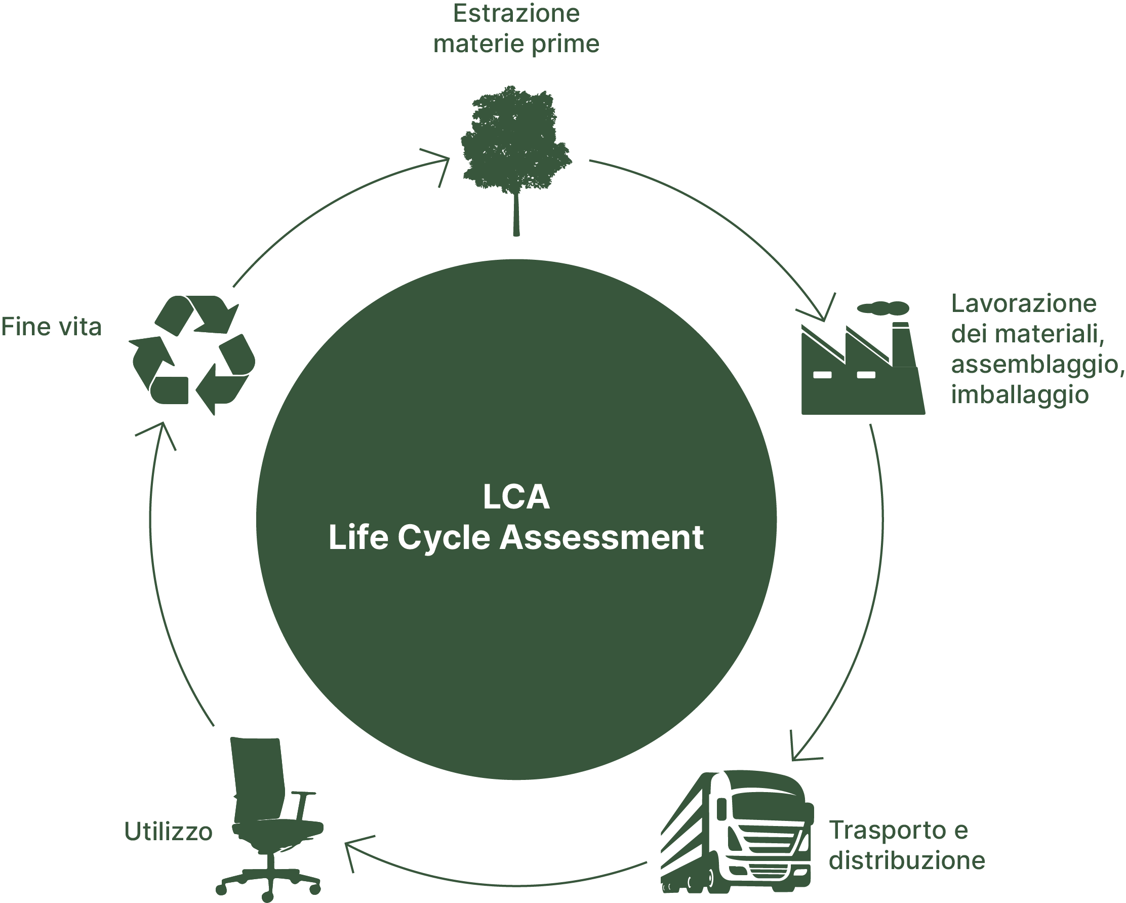 vetro e acciaio con percentuali di materiale riciclato.